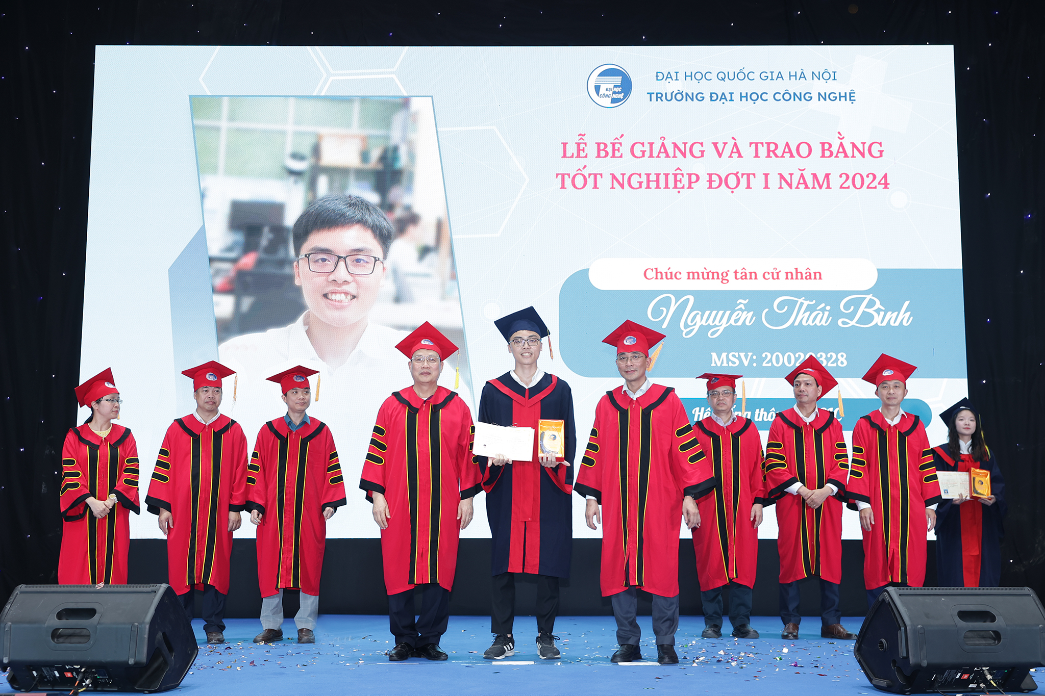 Không chỉ sở hữu thành tích “khủng” về các cuộc thi quốc gia và quốc tế, thủ khoa tốt nghiệp Nguyễn Thái Bình là một sinh viên đam mê nghiên cứu và đạt được nhiều giải thưởng về nghiên cứu khoa học như giải Ba hội nghị sinh viên nghiên cứu khoa học cấp Bộ năm 2023, giải Nhất hội nghị sinh viên nghiên cứu khoa học cấp Trường năm học 2022-2023, đồng tác giả 3 bài báo khoa học trong các hội nghị, tạp chí khoa học quốc tế: KSE 2022, VLSP 2022, ICAIL 2023, Journal of Computer Science and Cybernetics.