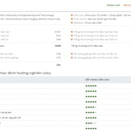 Hệ thống đánh giá chất lượng đại học Việt Nam (University Performance Metrics – http://upm.vn/, viết tắt là UPM) vừa công bố kết quả xếp hạng chỉ số nghiên cứu của các cơ sở giáo dục đại học Việt Nam năm 2019. Trường Đại học Công nghệ (Đại học Quốc gia Hà Nội) được đánh giá xếp hạng đại học định hướng nghiên cứu tổng thể 5/5 sao trong nhóm 800 – 1000 điểm. Trong đó, có 5/8 tiêu chí được xếp hạng 5 sao.