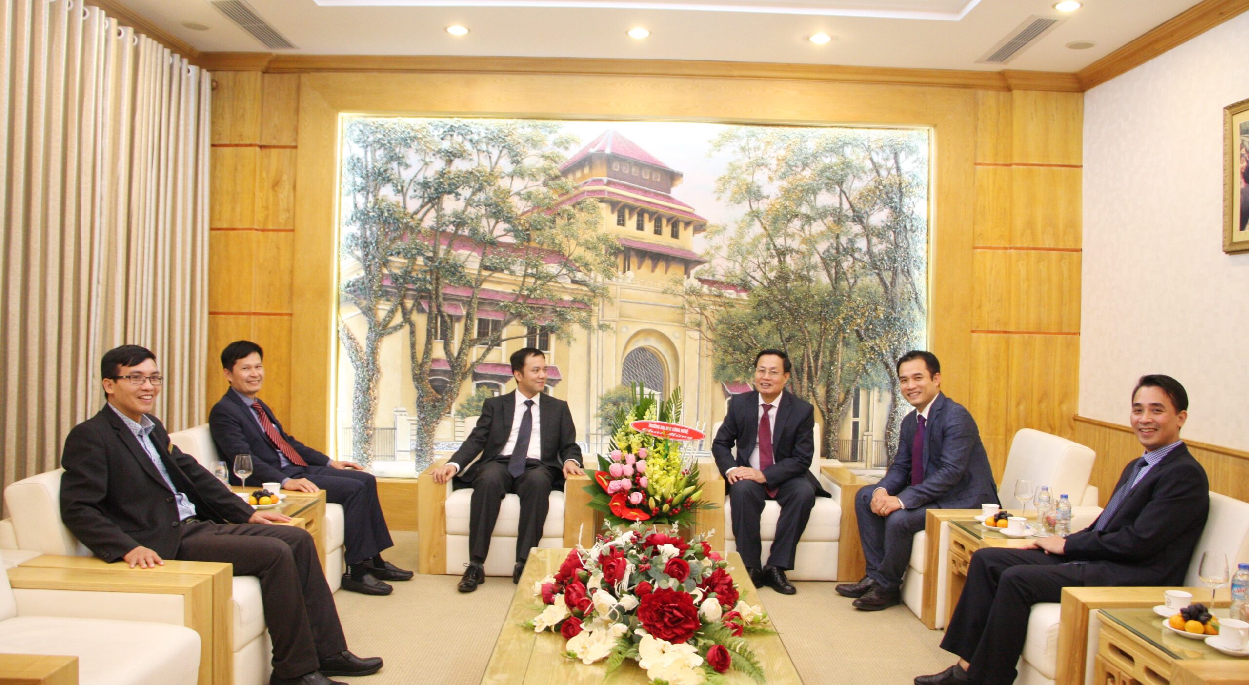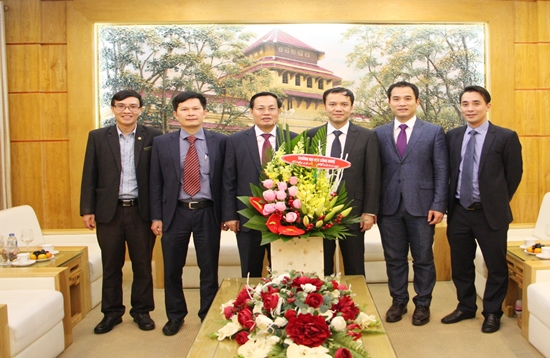 Ban Giám hiệu Trường ĐHCN chúc mừng GS.TS. Nguyễn Hữu Đức (thứ 3, từ trái sang) được phong tặng Danh hiệu “Nhà giáo Nhân dân”