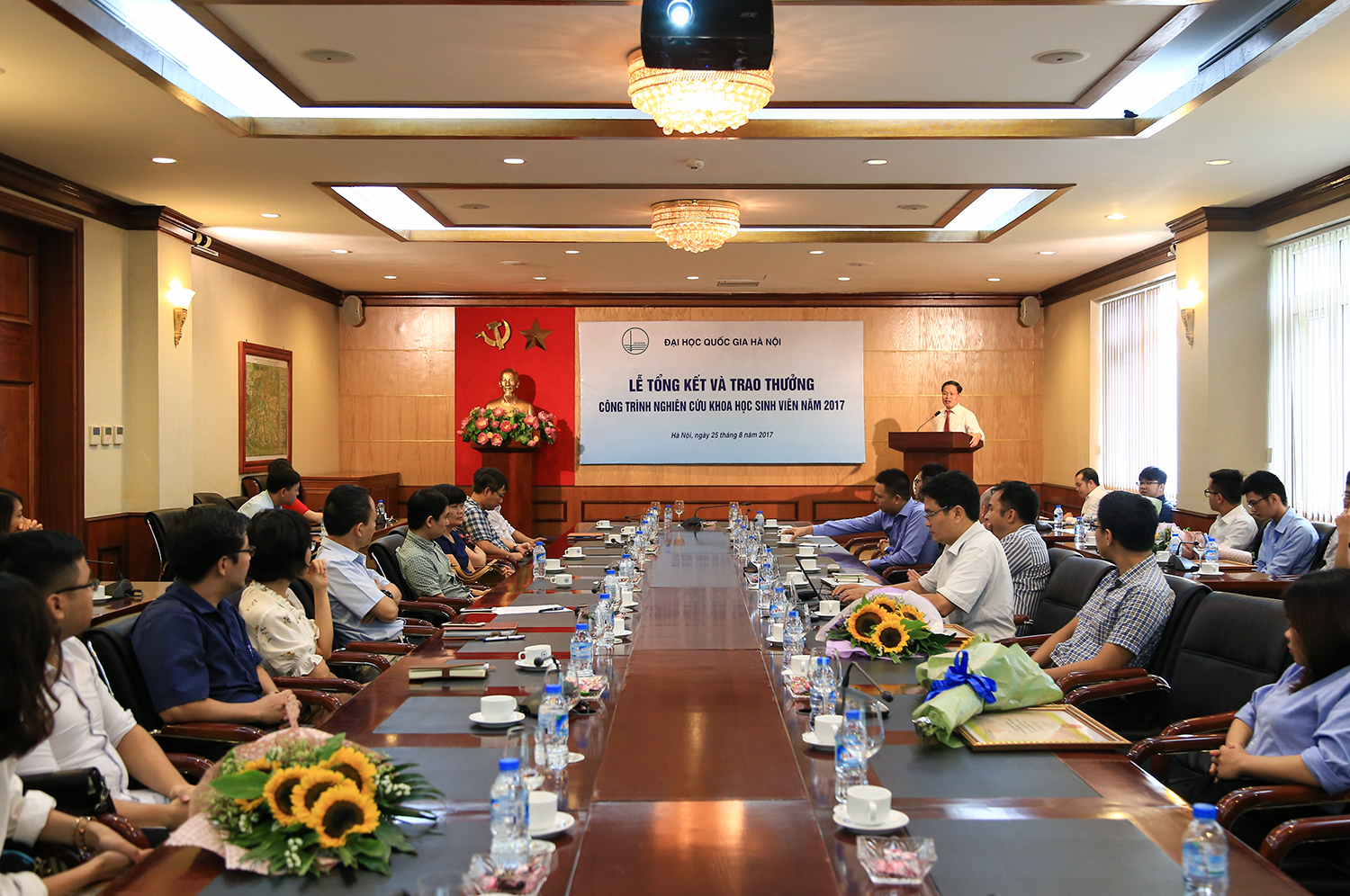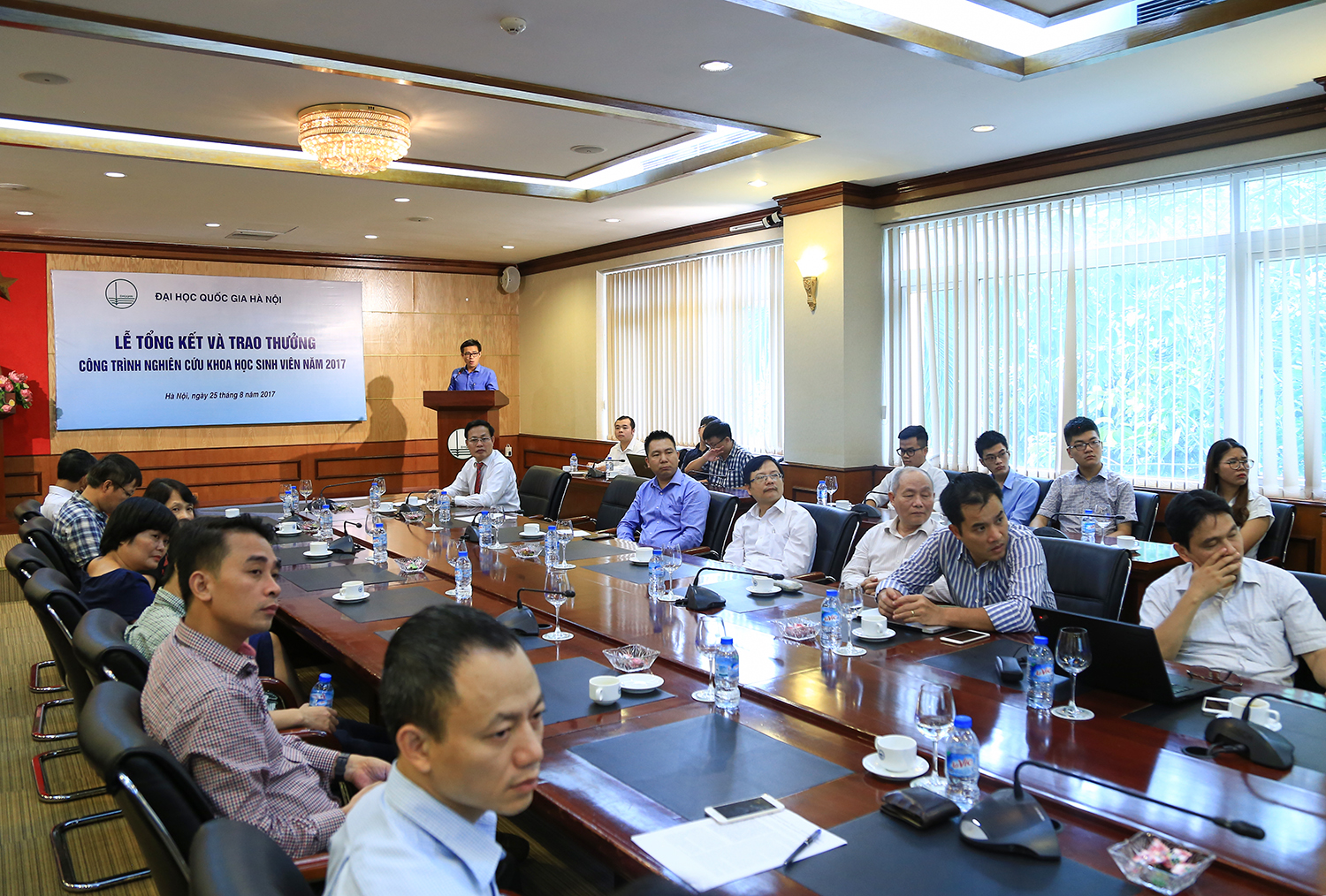Sáng 25/8/2017, ĐHQGHN đã trang trọng tổ chức lễ tổng kết và trao thưởng cho 17 công trình sinh viên nghiên cứu khoa học cấp ĐHQGHN năm 2017. Phó Giám đốc ĐHQGHN GS.TS Nguyễn Hữu Đức đã dự và trao thưởng cho các sinh viên có kết quả nghiên cứu xuất sắc.