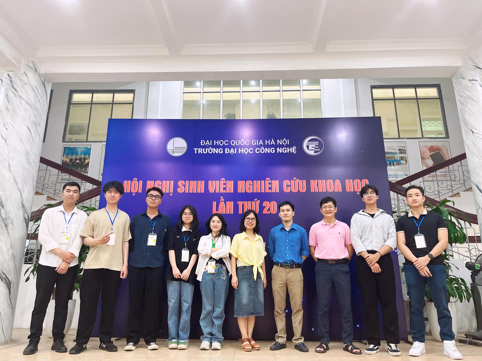 Đề tài của sinh viên Lê Việt Quân (đứng thứ hai, bên phải sang), QH-2020, khoa Công nghệ thông tin đạt giải Nhất hội sinh sinh viên nghiên cứu khoa học cấp Trường và được đề cử tham dự giải thưởng cấp ĐHQGHN