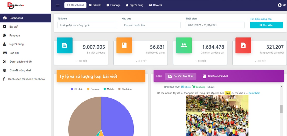 Giao diện người dùng “VNU-SMM: Hệ thống giám sát mạng xã hội”