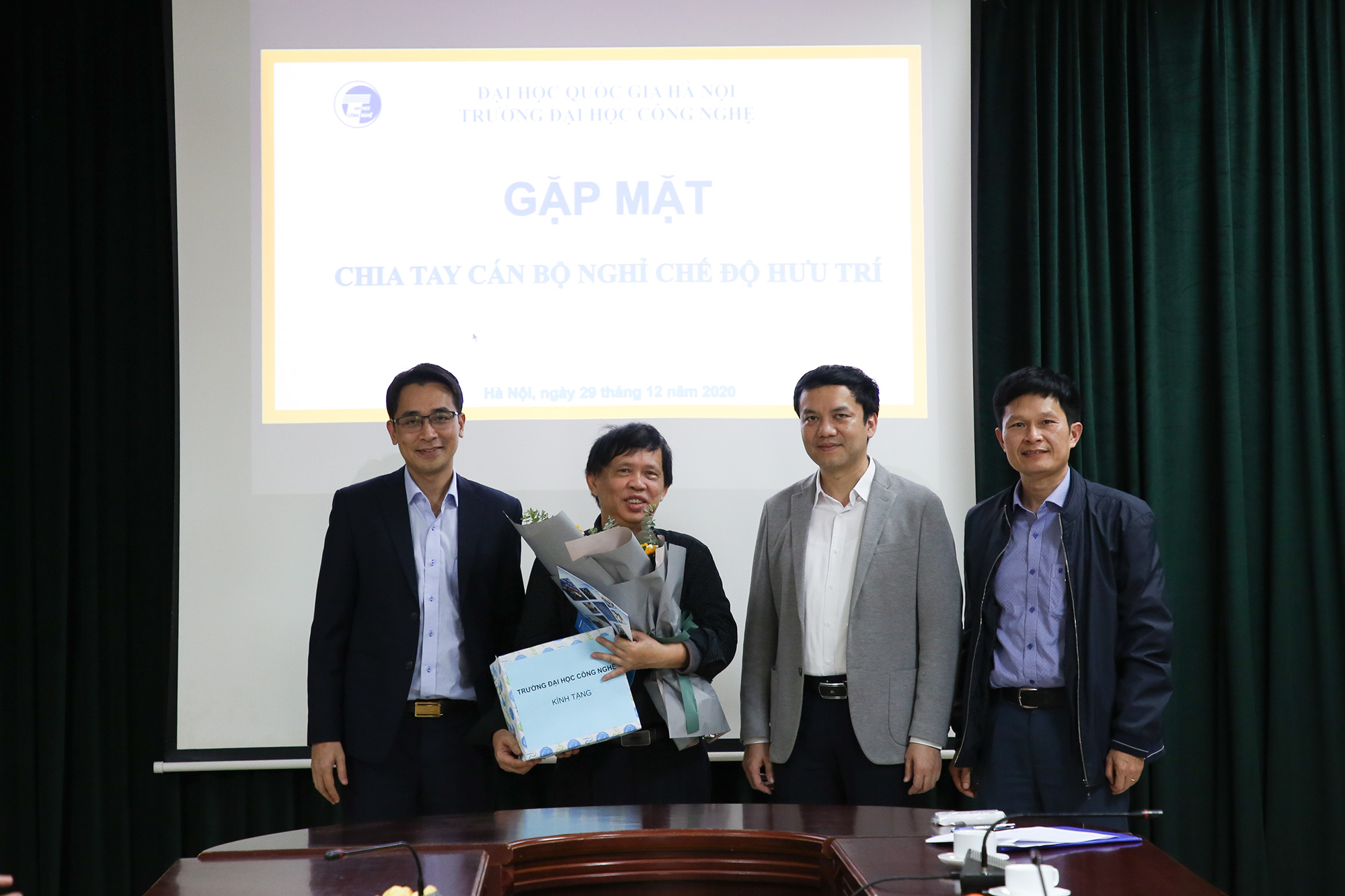 Ngày 29/12/2020, Trường Đại học Công nghệ (ĐHCN) – Đại học Quốc gia Hà Nội tổ chức buổi gặp mặt thân mật chia tay PGS.TS. Nguyễn Quốc Tuấn – Giảng viên cao cấp, khoa Điện tử viễn thông; nguyên Phó Chủ nhiệm khoa Điện tử viễn thông Trường ĐHCN về nghỉ hưu hưởng chế độ Bảo hiểm xã hội sau 50 năm công tác, trong đó có 40 năm cống hiến trong ngành giáo dục.