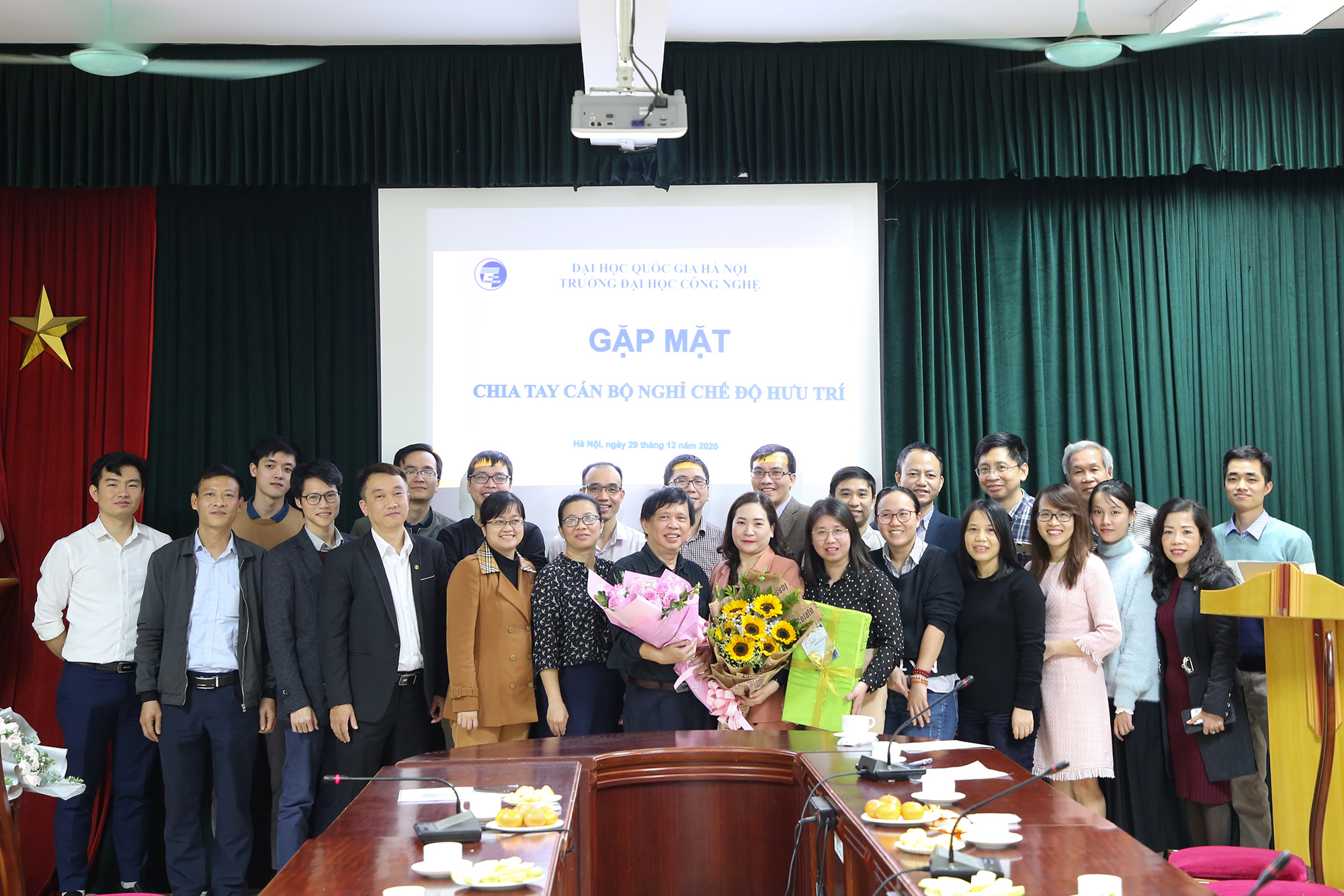 Ngày 29/12/2020, Trường Đại học Công nghệ (ĐHCN) – Đại học Quốc gia Hà Nội tổ chức buổi gặp mặt thân mật chia tay PGS.TS. Nguyễn Quốc Tuấn – Giảng viên cao cấp, khoa Điện tử viễn thông; nguyên Phó Chủ nhiệm khoa Điện tử viễn thông Trường ĐHCN về nghỉ hưu hưởng chế độ Bảo hiểm xã hội sau 50 năm công tác, trong đó có 40 năm cống hiến trong ngành giáo dục.