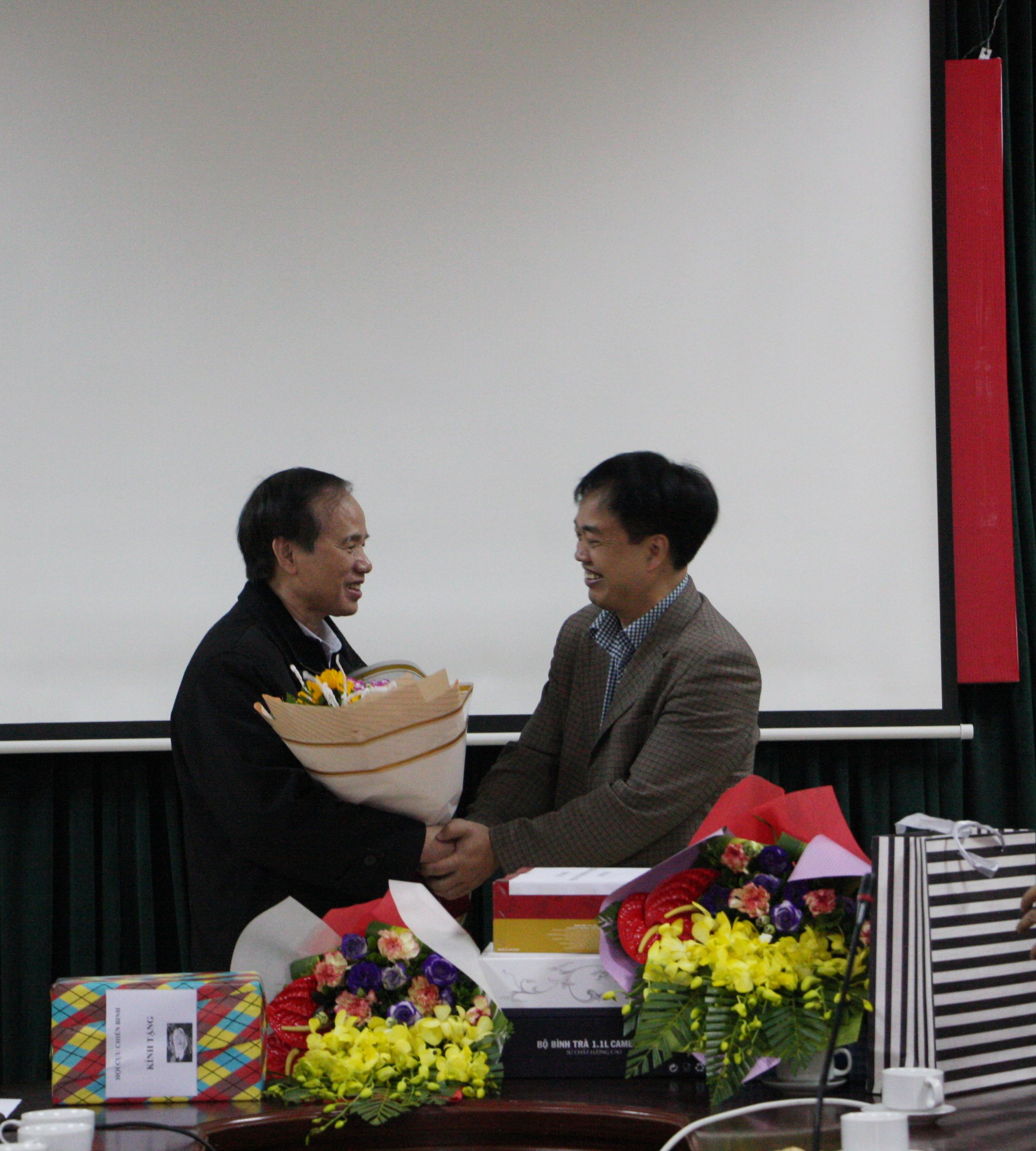 Thay mặt tập thể Lãnh đạo Nhà trường, Hiệu trưởng Nguyễn Việt Hà đã trao tặng PGS.TS. Trần Quang Vinh món quà đầy tình thân ái, trân trọng.