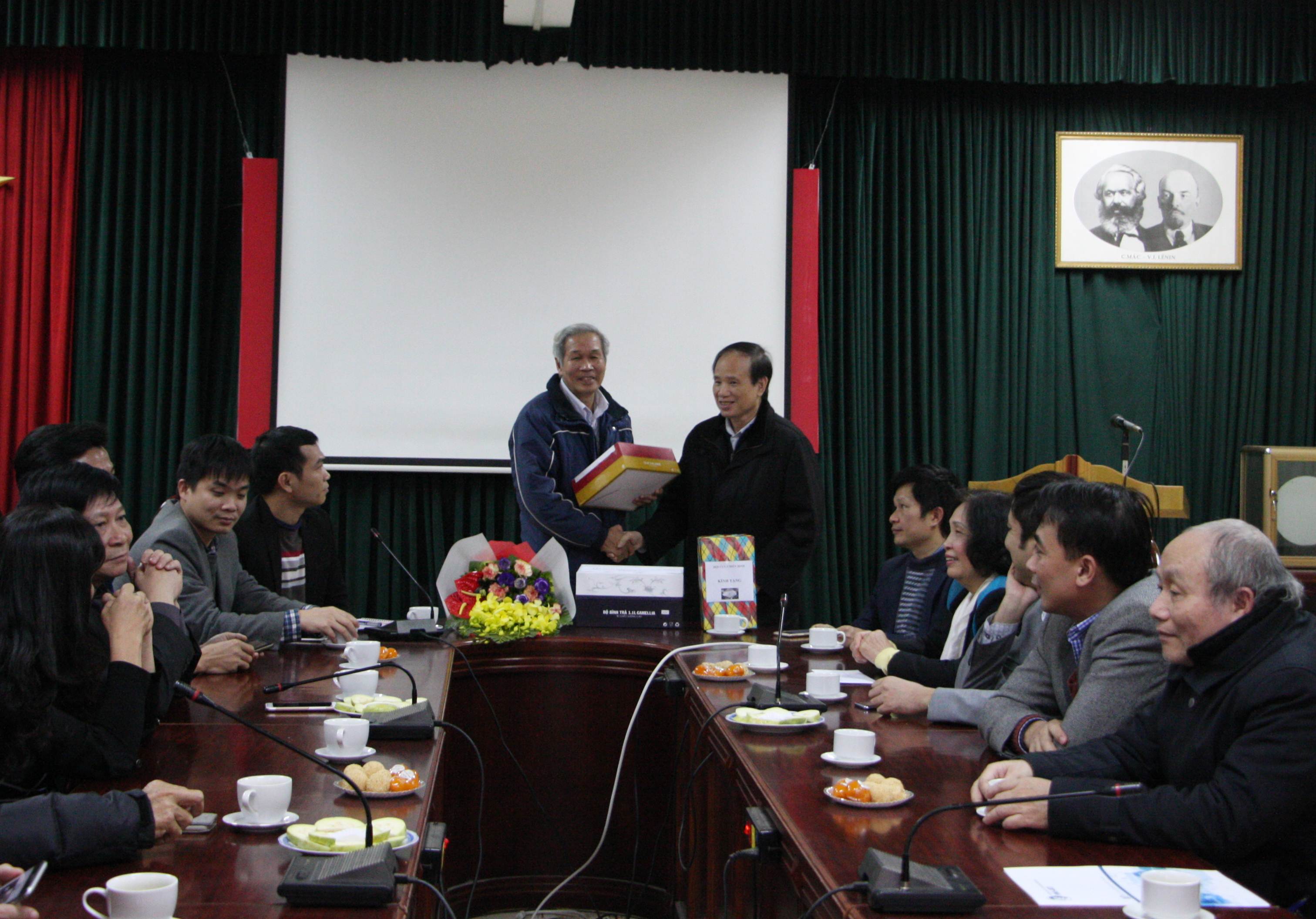Thay mặt tập thể Lãnh đạo Nhà trường, Hiệu trưởng Nguyễn Việt Hà đã trao tặng PGS.TS. Trần Quang Vinh món quà đầy tình thân ái, trân trọng.