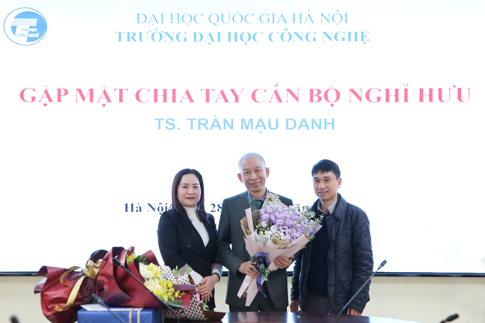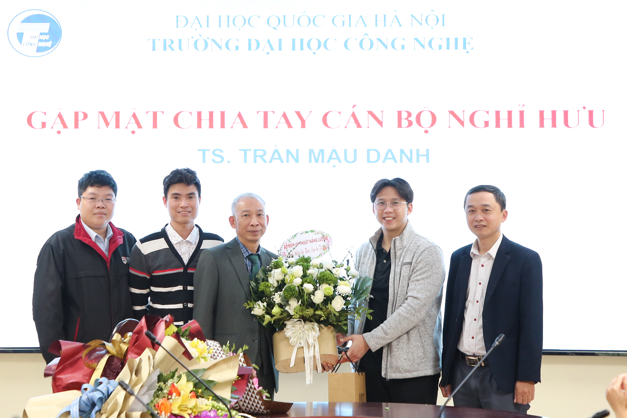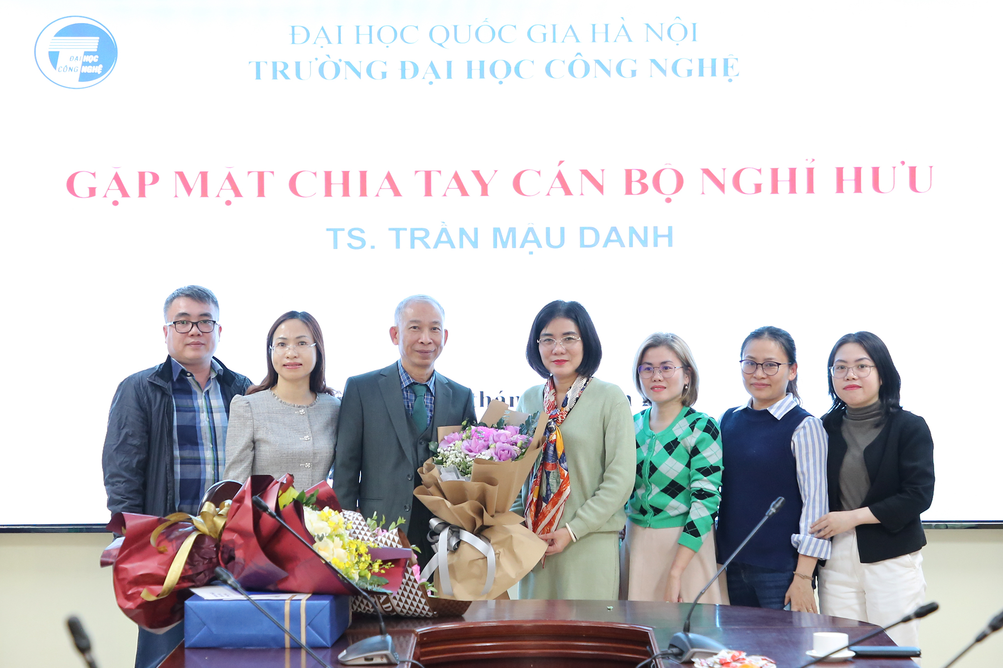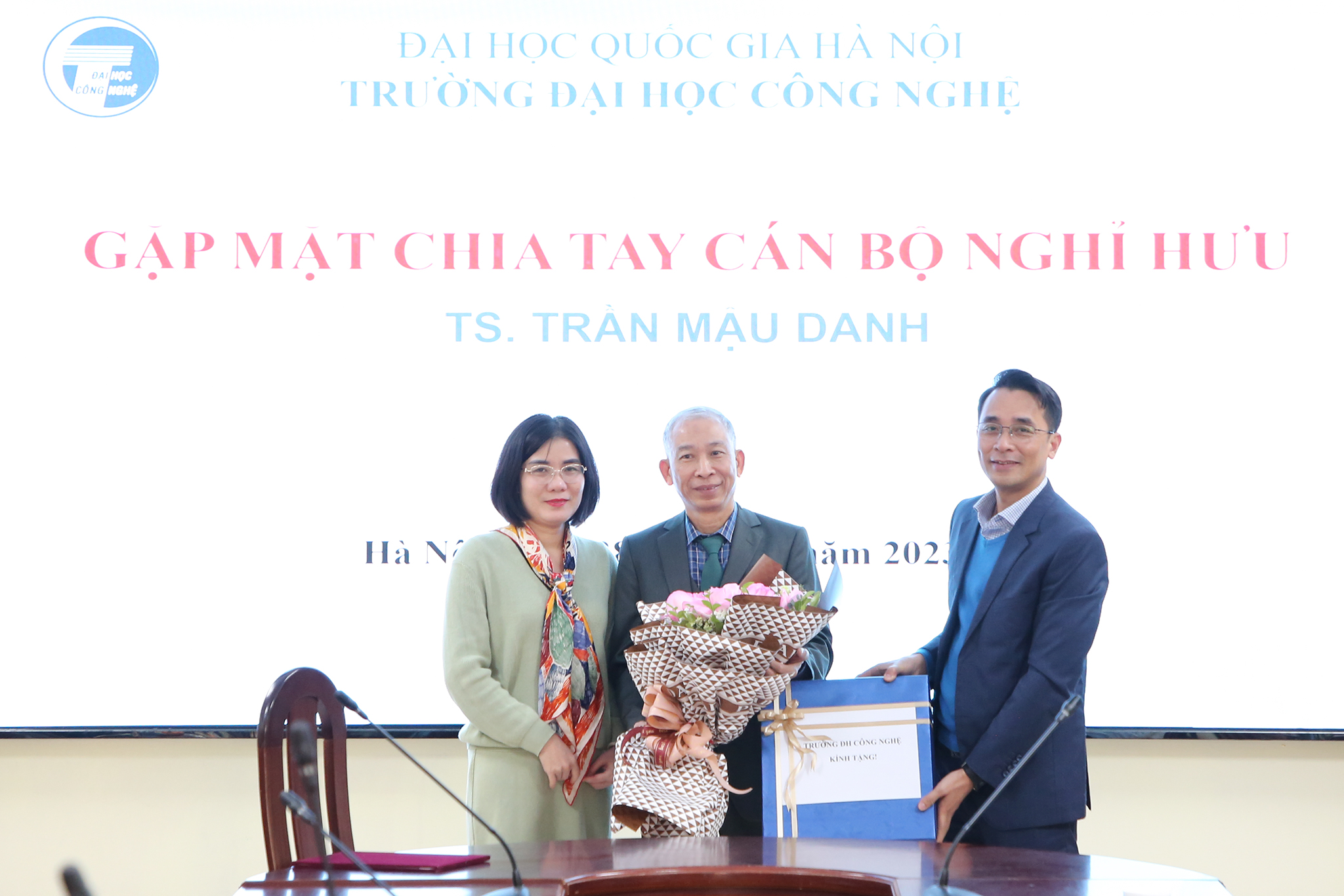 Ngày 28/12/2023, Trường Đại học Công nghệ – Đại học Quốc gia Hà Nội (VNU-UET) tổ chức buổi gặp mặt thân mật chia tay TS. Trần Mậu Danh – Giảng viên, khoa Vật lý kỹ thuật và công nghệ nano; nguyên Trưởng phòng Kế hoạch tài chính; nguyên Phó Chủ nhiệm khoa Vật lý kỹ thuật và công nghệ nano và Phó Chủ nhiệm Bộ môn Vật liệu và linh kiện từ tính nano về nghỉ hưu theo chế độ sau 37 năm công tác.