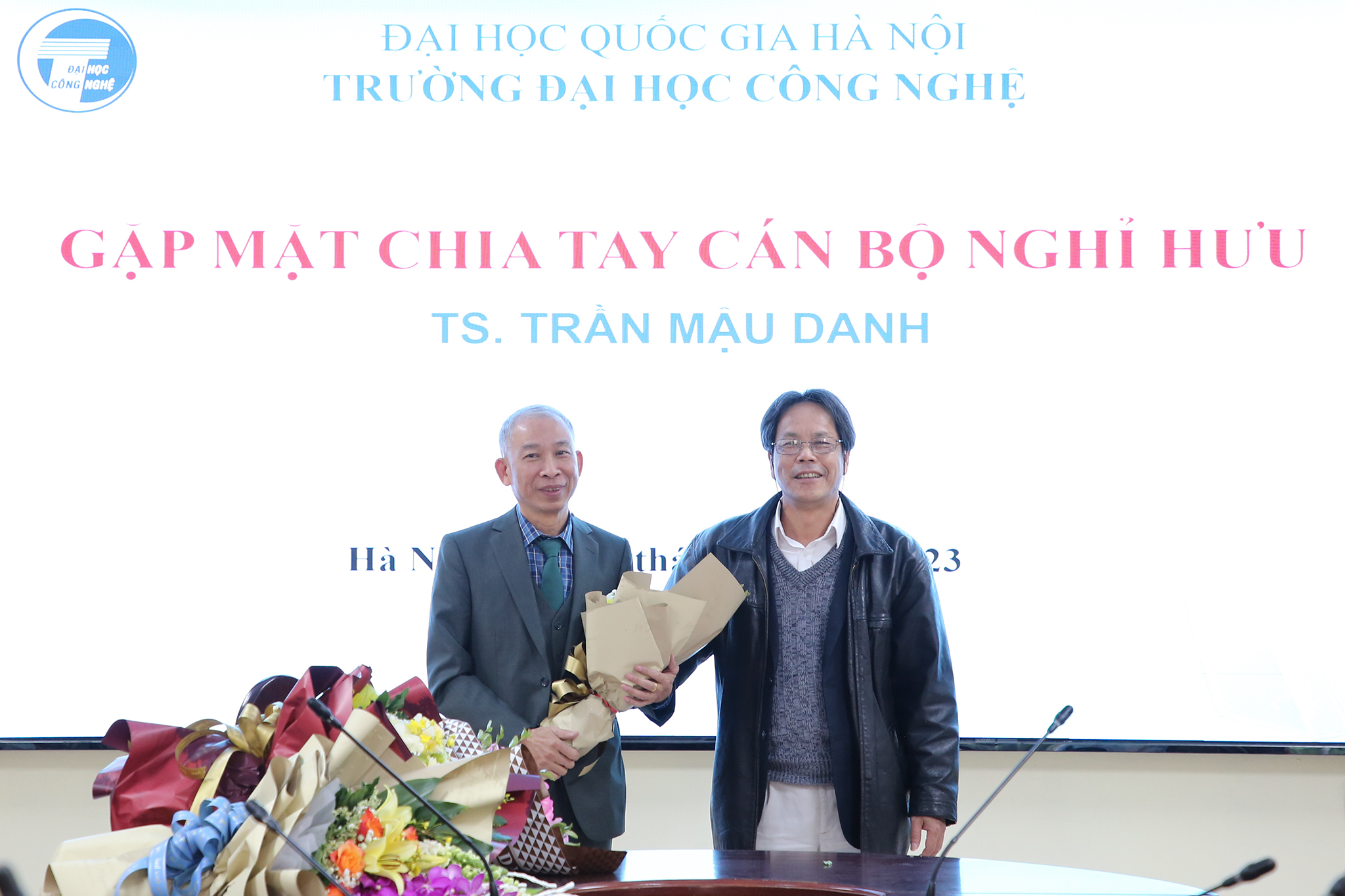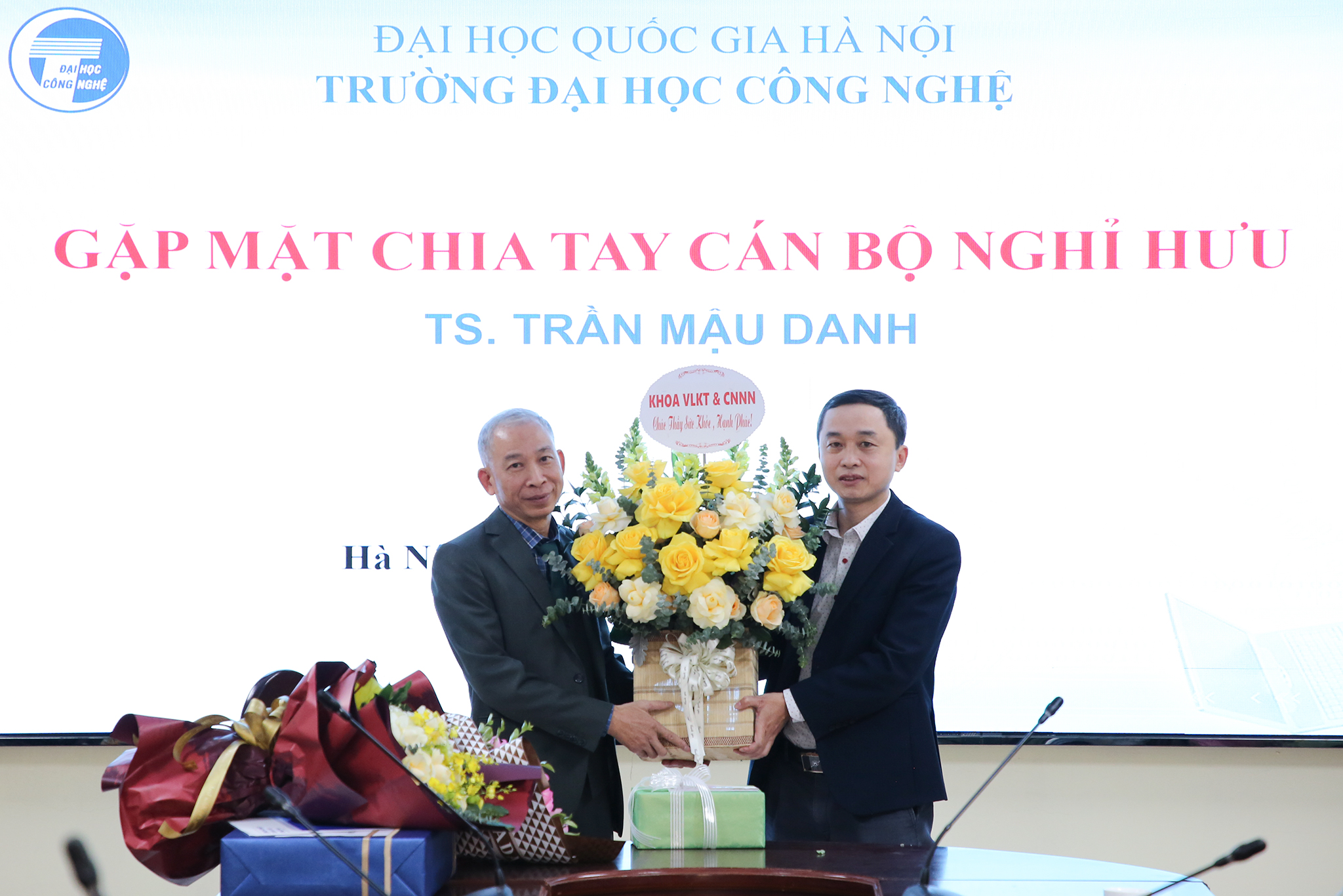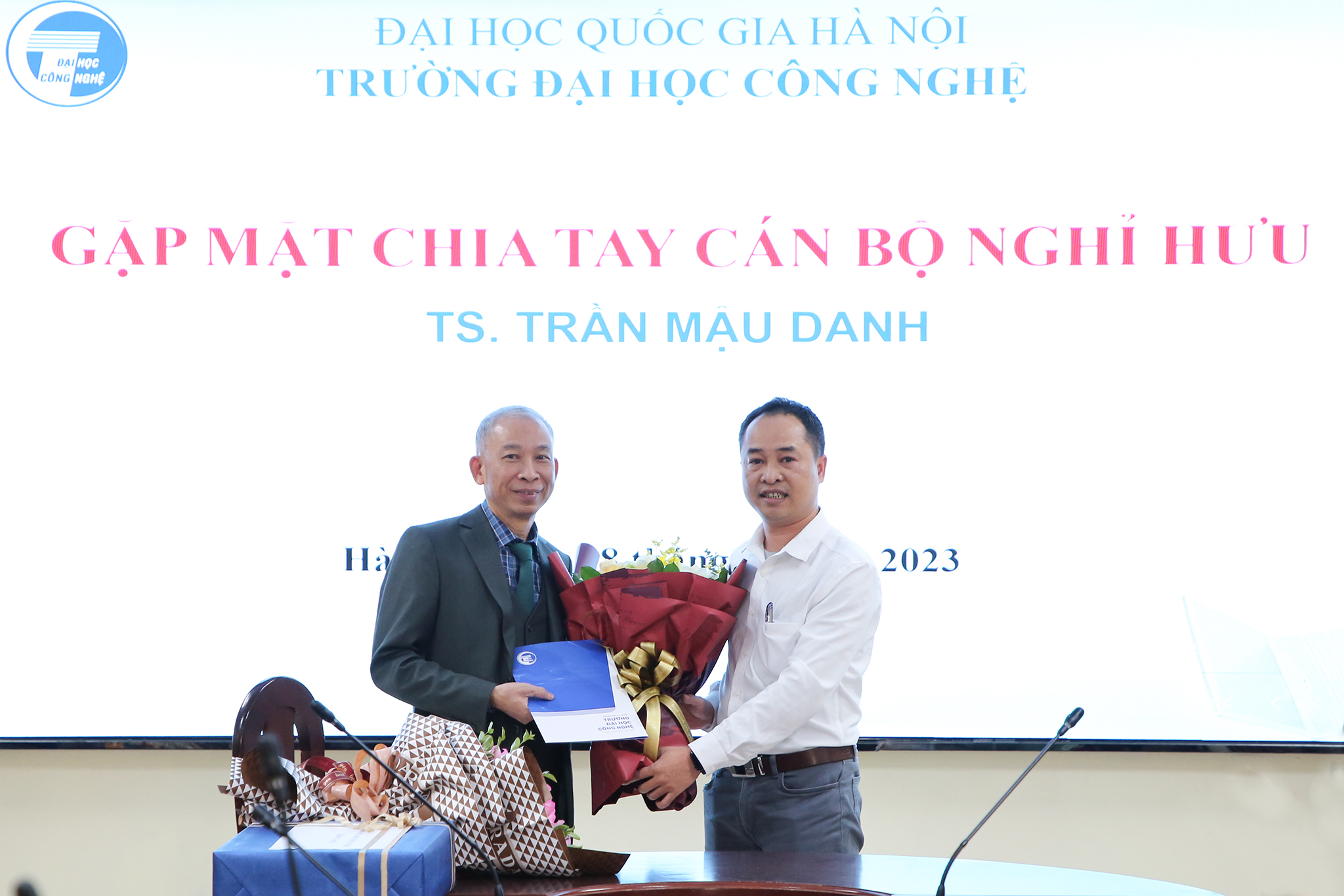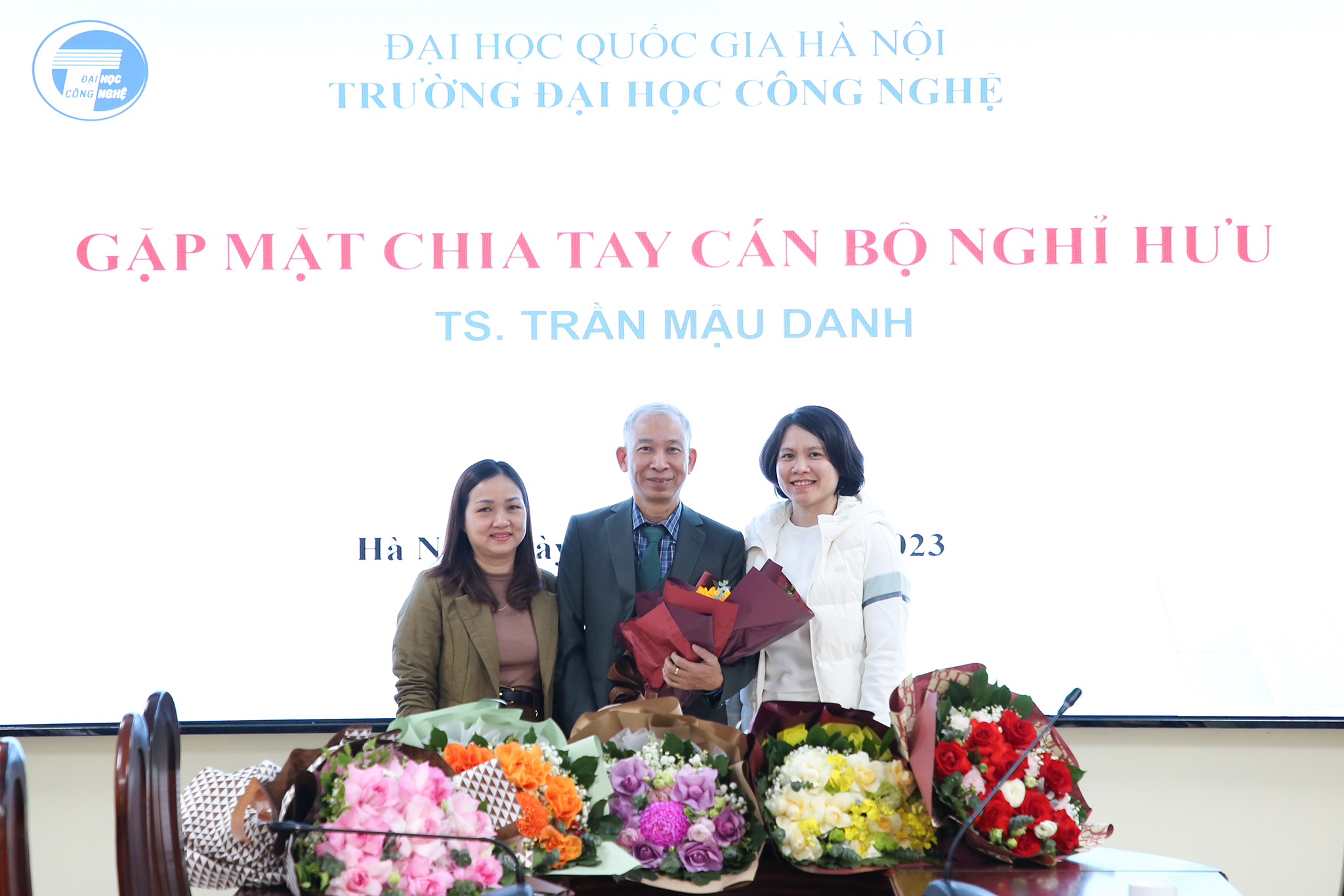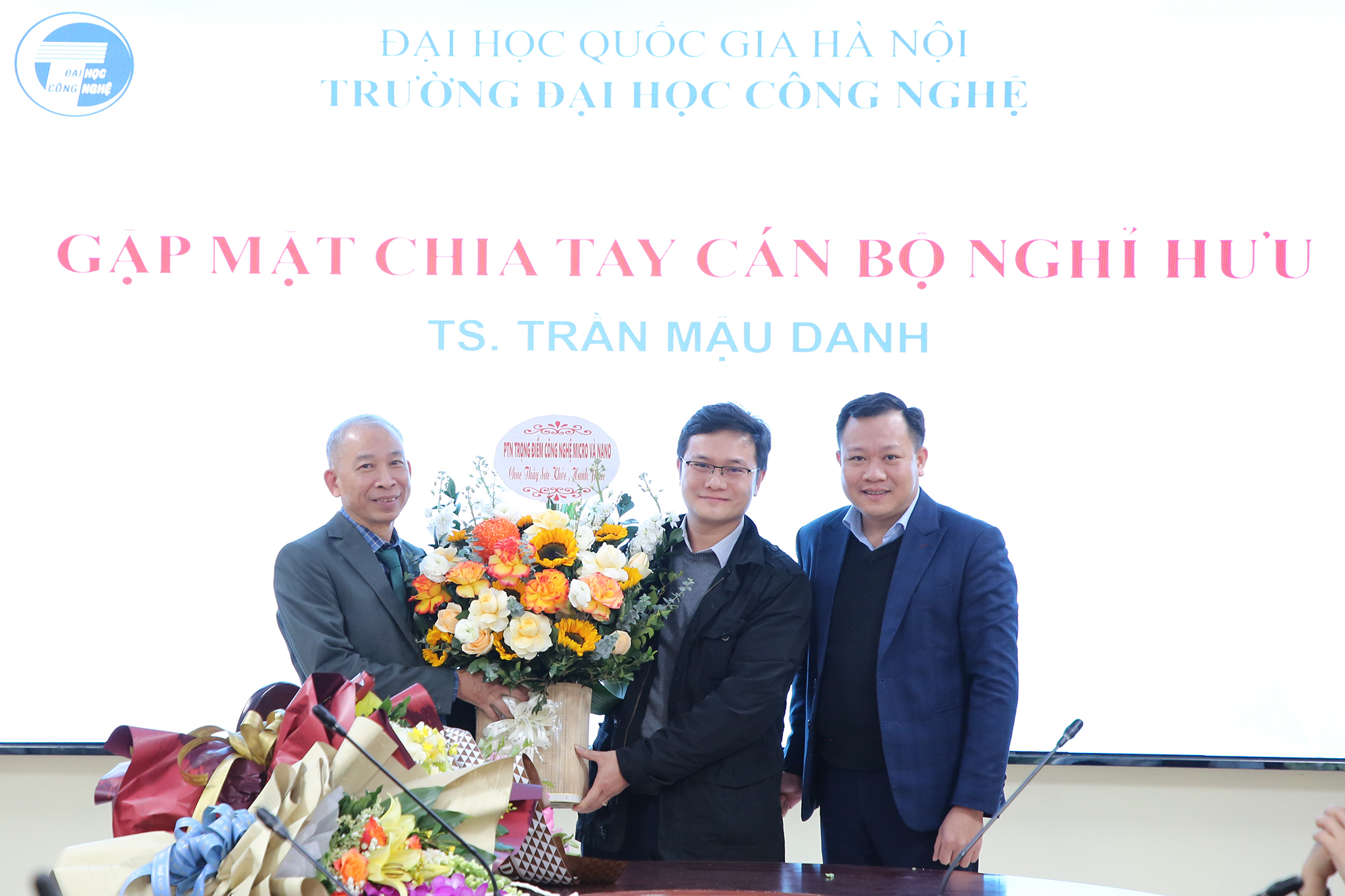 Ngày 28/12/2023, Trường Đại học Công nghệ – Đại học Quốc gia Hà Nội (VNU-UET) tổ chức buổi gặp mặt thân mật chia tay TS. Trần Mậu Danh – Giảng viên, khoa Vật lý kỹ thuật và công nghệ nano; nguyên Trưởng phòng Kế hoạch tài chính; nguyên Phó Chủ nhiệm khoa Vật lý kỹ thuật và công nghệ nano và Phó Chủ nhiệm Bộ môn Vật liệu và linh kiện từ tính nano về nghỉ hưu theo chế độ sau 37 năm công tác.