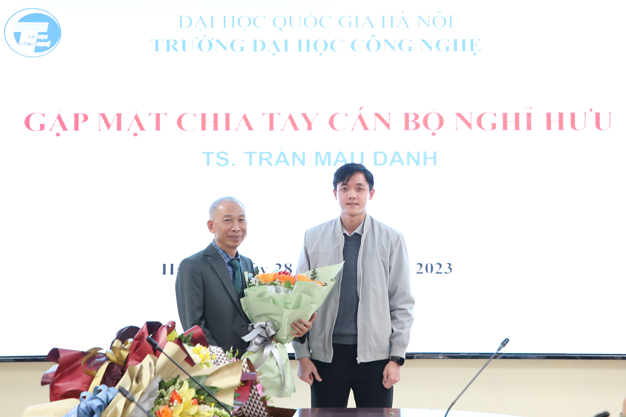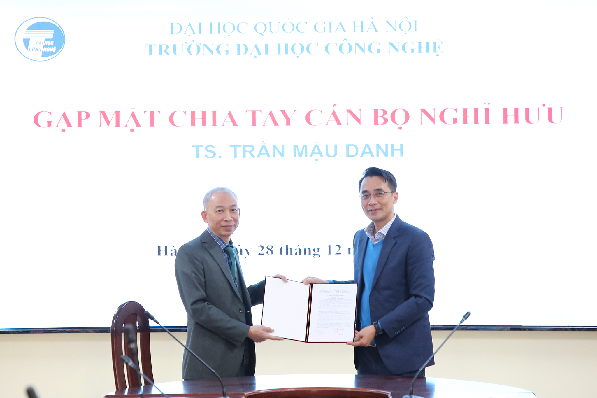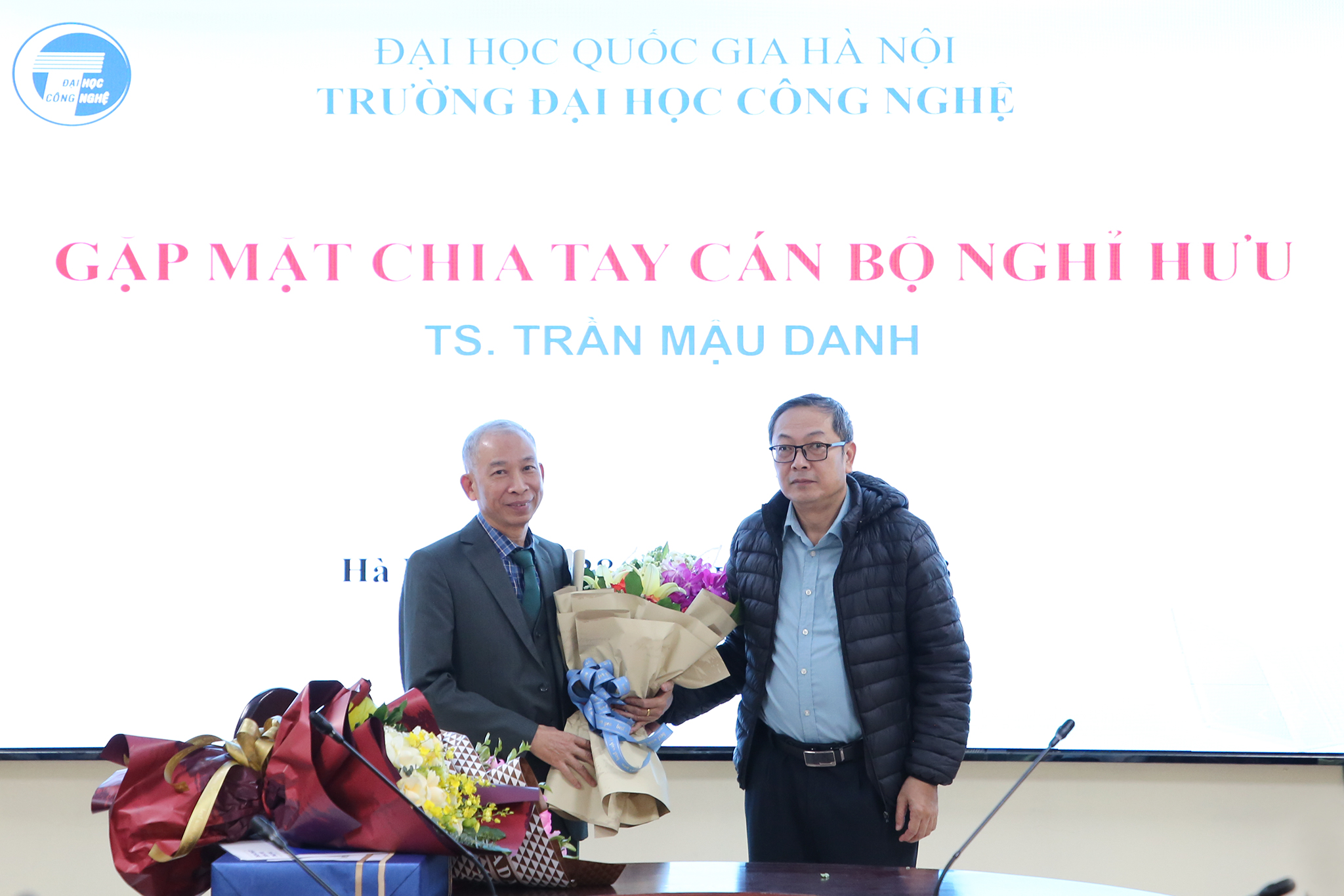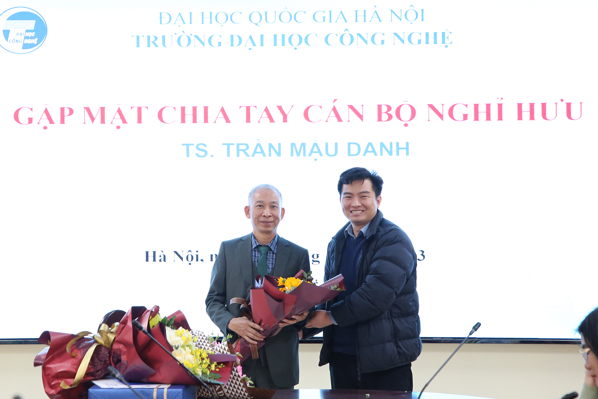 Ngày 28/12/2023, Trường Đại học Công nghệ – Đại học Quốc gia Hà Nội (VNU-UET) tổ chức buổi gặp mặt thân mật chia tay TS. Trần Mậu Danh – Giảng viên, khoa Vật lý kỹ thuật và công nghệ nano; nguyên Trưởng phòng Kế hoạch tài chính; nguyên Phó Chủ nhiệm khoa Vật lý kỹ thuật và công nghệ nano và Phó Chủ nhiệm Bộ môn Vật liệu và linh kiện từ tính nano về nghỉ hưu theo chế độ sau 37 năm công tác.