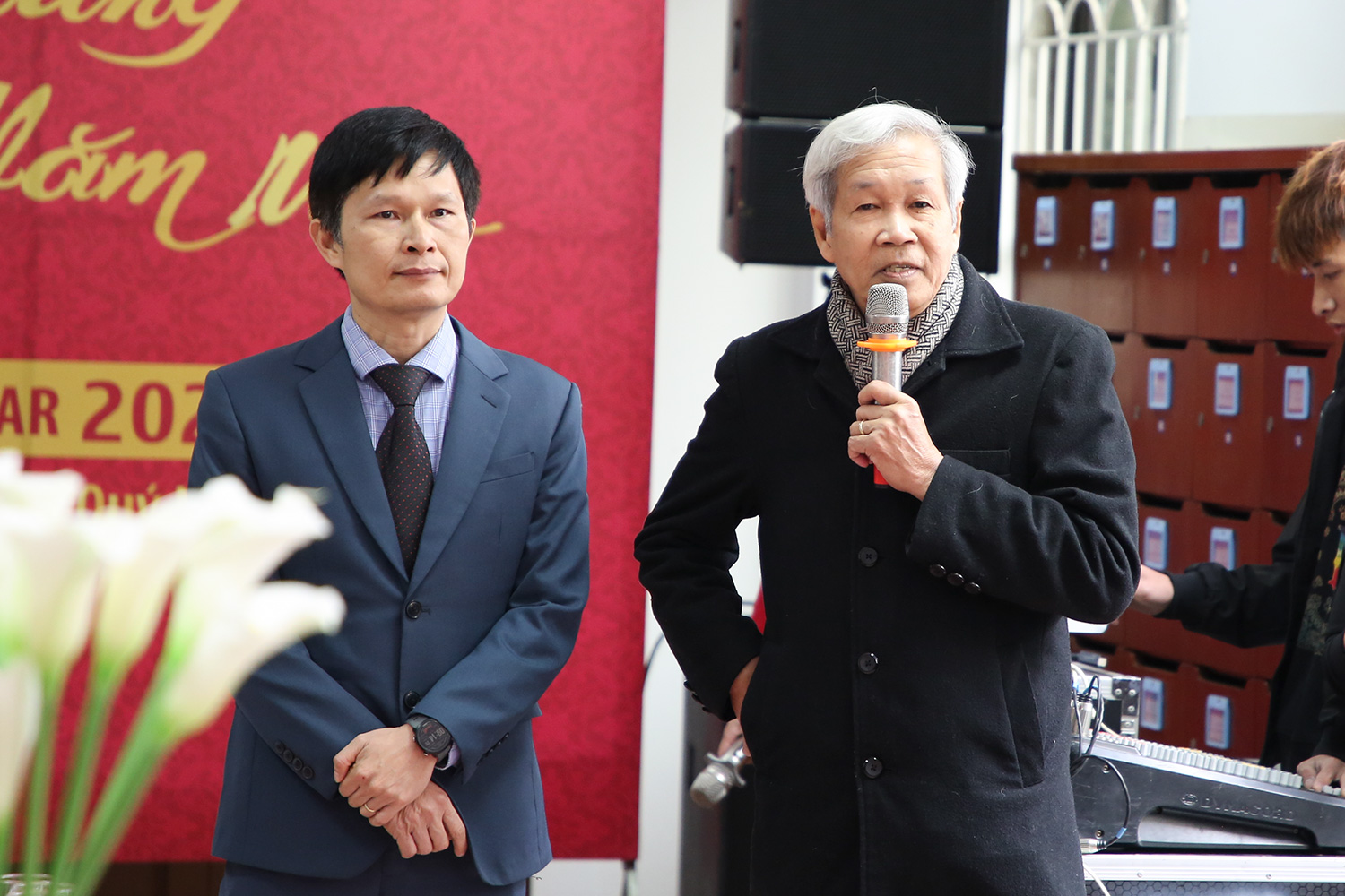 Phó Hiệu trưởng Nguyễn Anh Thái (bên trái ảnh) và Chủ tịch Công đoàn Trường Trịnh Anh Vũ (bên phải ảnh) gửi lời cảm ơn tới toàn thể cán bộ, công chức, viên chức và người lao động đã nỗ lực cố gắng, đóng góp cho sự phát triển Nhà trường trong năm qua