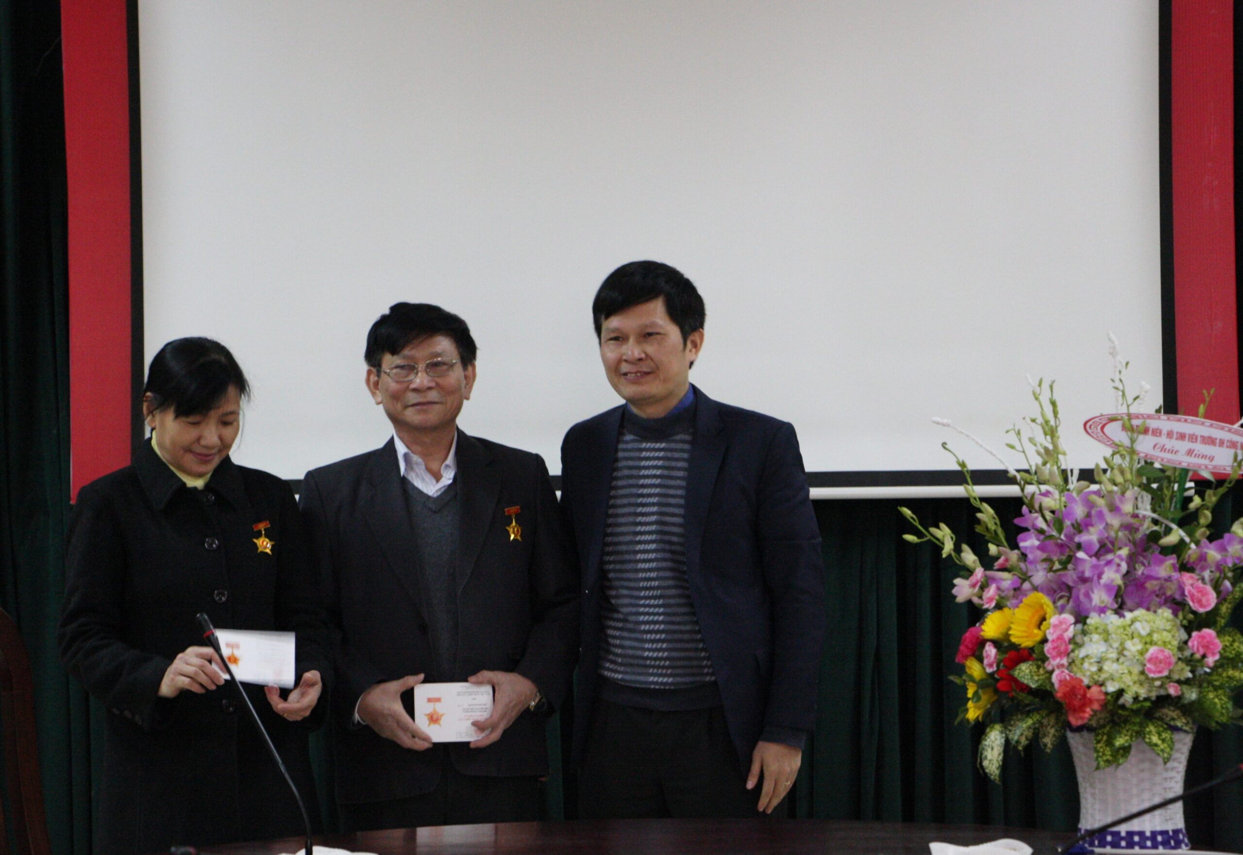 Tham dự buổi gặp mặt gồm TS. Nguyễn Anh Thái – Phó Hiệu trưởng; PGS.TS. Trịnh Anh Vũ- Chủ tịch công đoàn; CN. Nguyễn Đình Chinh – Chủ tịch Hội Sinh viên cùng toàn thể cán bộ trong Hội Cựu chiến binh.