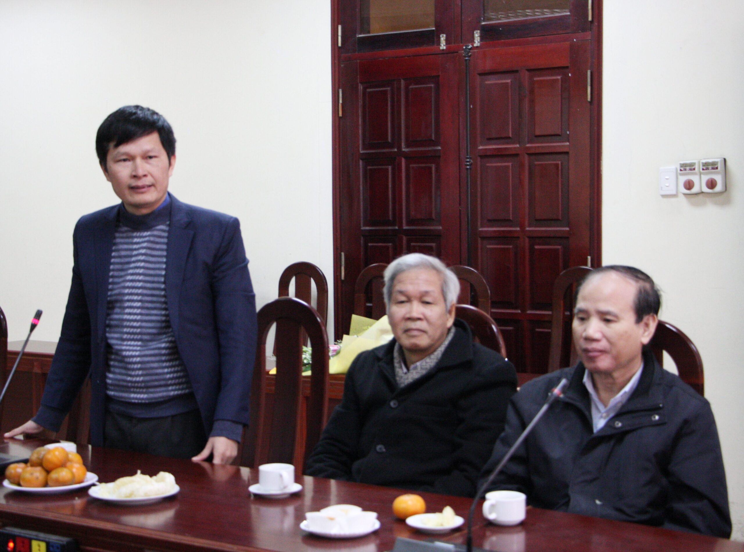 TS. Nguyễn Anh Thái (bên phải ảnh) chúc mừng Hội Cựu chiến binh nhân dịp ngày Quân đội nhân dân