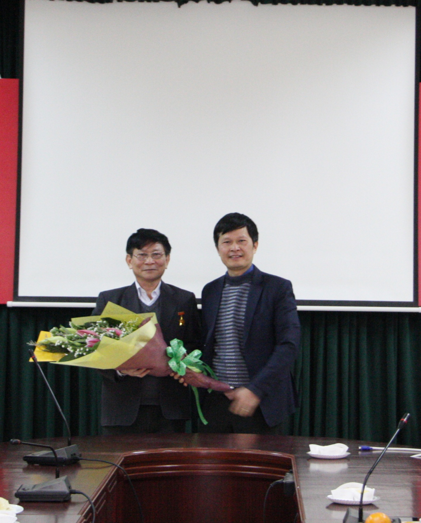 TS. Nguyễn Anh Thái (ngoài cùng bên phải ảnh) trao tặng kỷ niệm chương cho GS.TS. Bạch Gia Dương (ở giữa) và ThS. Nguyễn Thị Xoan (ngoài cùng, bên trái ảnh) vì đã có thành tích góp phần xây dựng vào hoạt động của Hội trong thời gian qua