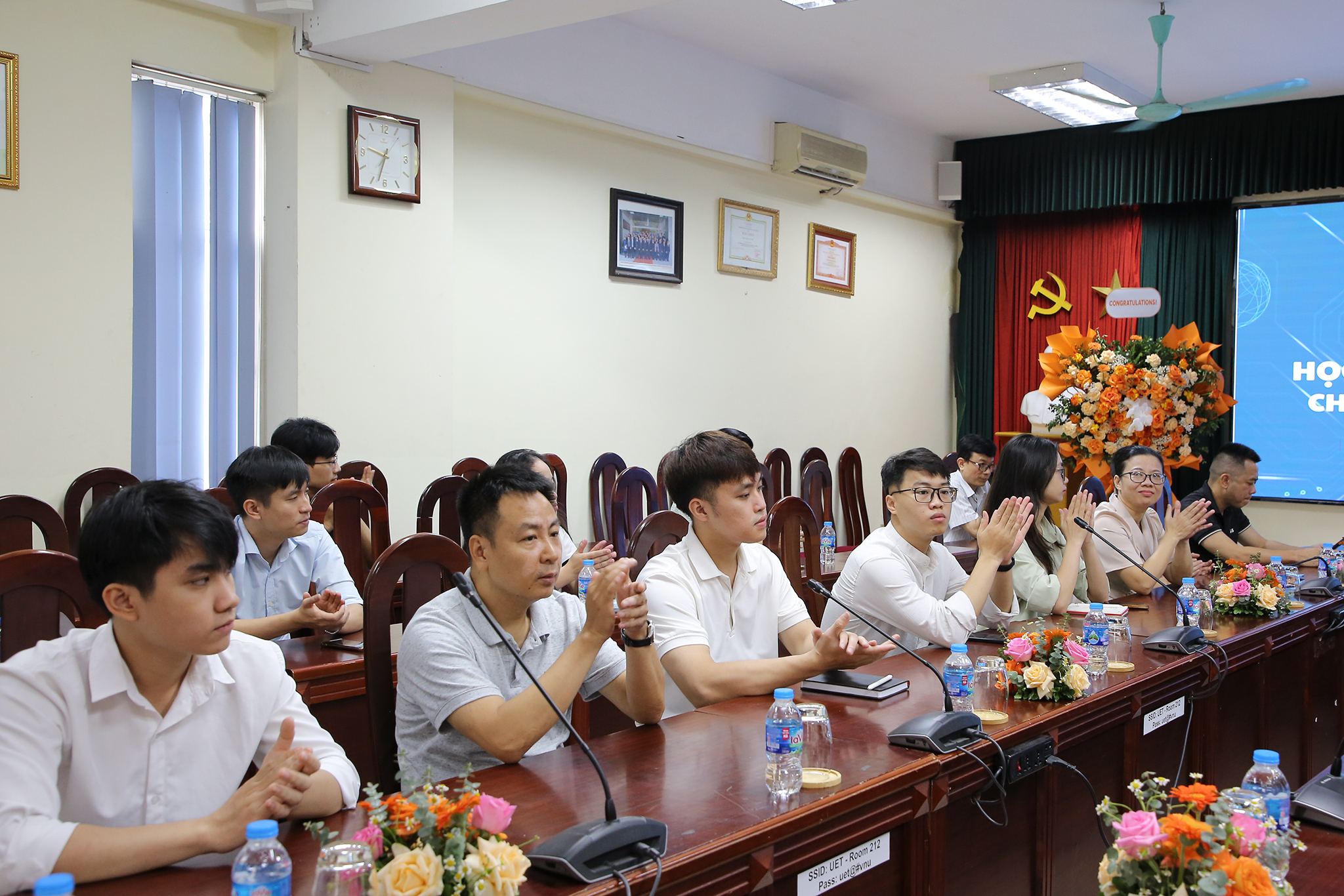 Tham dự buổi gặp mặt có GS.TS Chử Đức Trình – Hiệu trưởng Nhà trường cùng lãnh đạo phòng Đào tạo, khoa Điện tử Viễn thông và các học viên ngành Kỹ thuật điện tử khóa QH-2024.