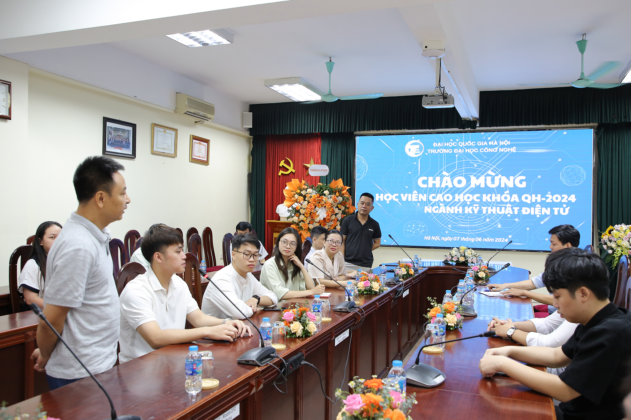 Ngày 07/6/2024, Khoa Điện tử Viễn thông, Trường Đại học Công nghệ, Đại học Quốc gia Hà Nội đã tổ chức gặp mặt các học viên cao học khóa QH-2024 ngành Kỹ thuật điện tử, trong đó có các học viên chương trình VNU-Samsung Technology Track (V-STT) do Trường Đại học Công nghệ, Đại học Quốc gia Hà Nội (VNU-UET) hợp tác với Samsung Điện tử (Samsung Electronics – Hàn Quốc).
