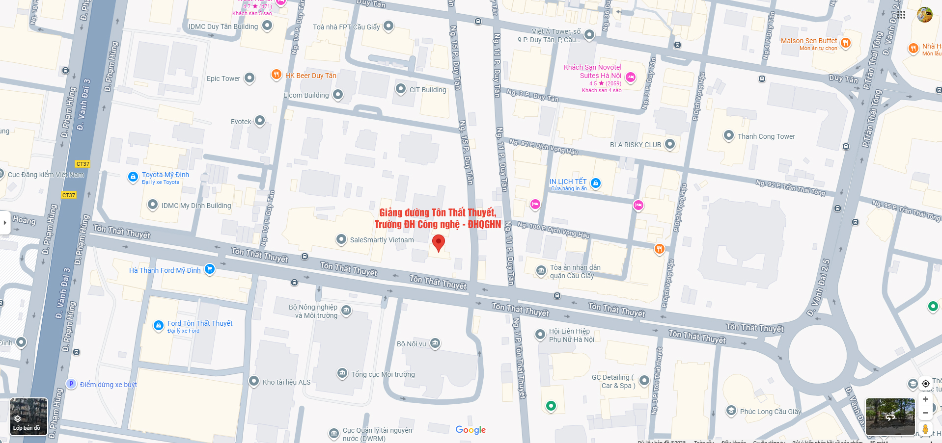 Sinh viên có thể đến khu Giảng đường Tôn Thất Thuyết (số 8, Tôn Thất Thuyết), Trường Đại học Công nghệ – ĐHQGHN bằng nhiều phương tiện khác nhau như: ôtô, xe bus, xe máy, xe đạp,… Khuyến khích sinh viên sử dụng các phương tiên công cộng đến trường.