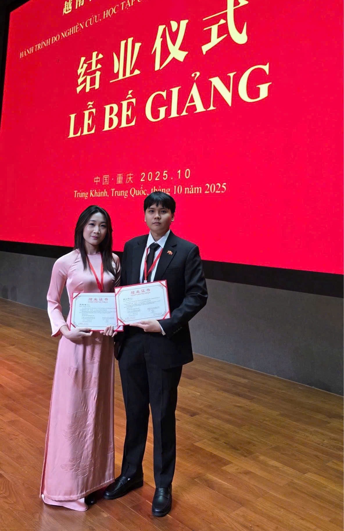 Giảng viên trẻ Nguyễn Thu Hằng và Lương Sơn Bá đã hoàn thành chương trình “Hành trình đỏ nghiên cứu học tập của thanh niên” tại Trung Quốc