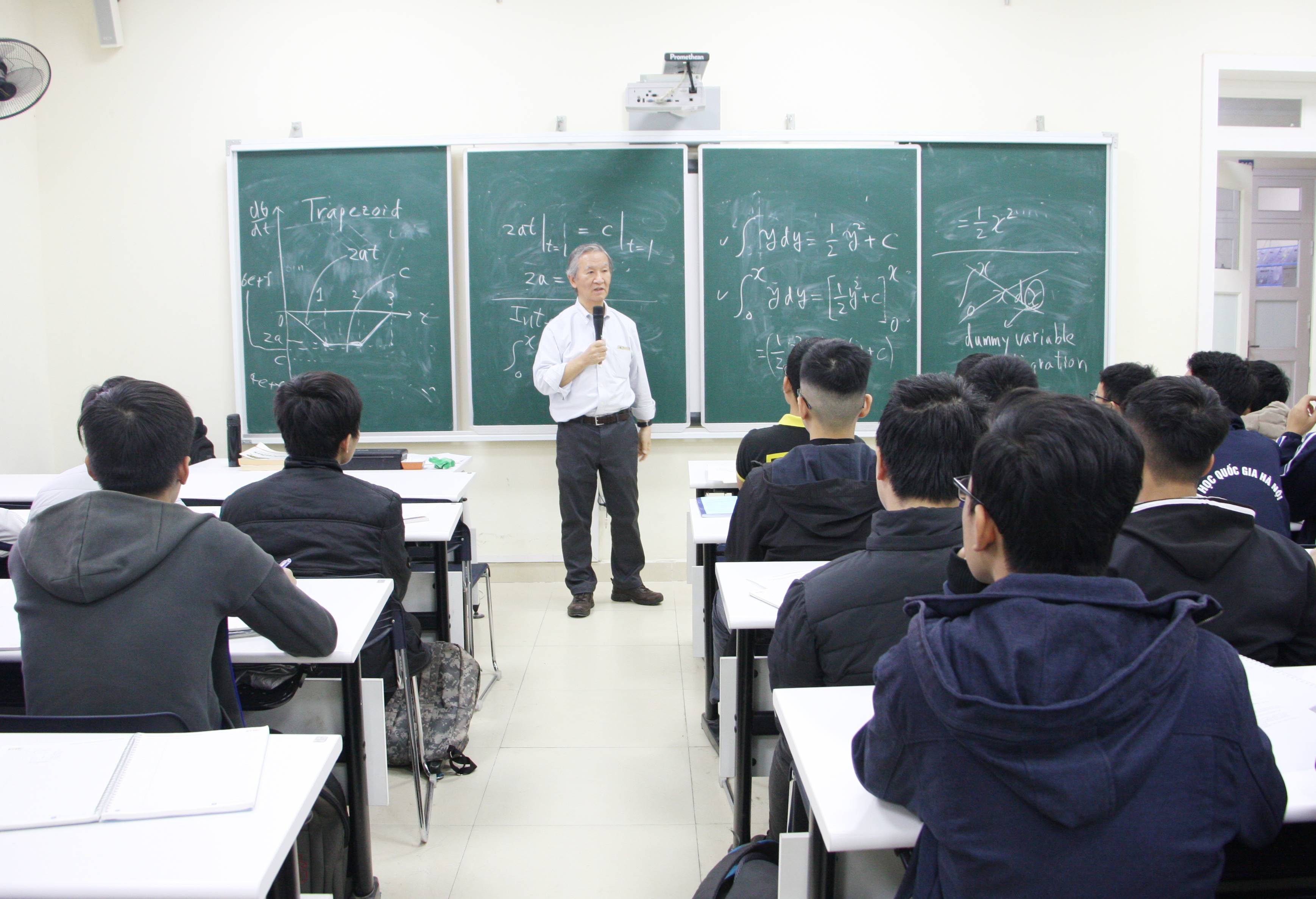 GS. Ken Tomiyama giảng dạy sinh viên ngành Kỹ thuật robot tại trường ĐHCN