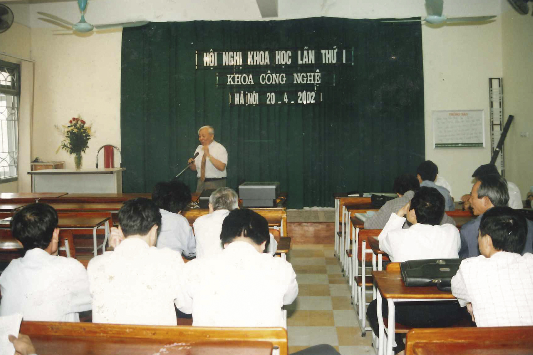 GS.VS. NGND Nguyễn Văn Hiệu phát biểu tại Hội nghị khoa học lần thứ I, Khoa Công nghệ năm 2002