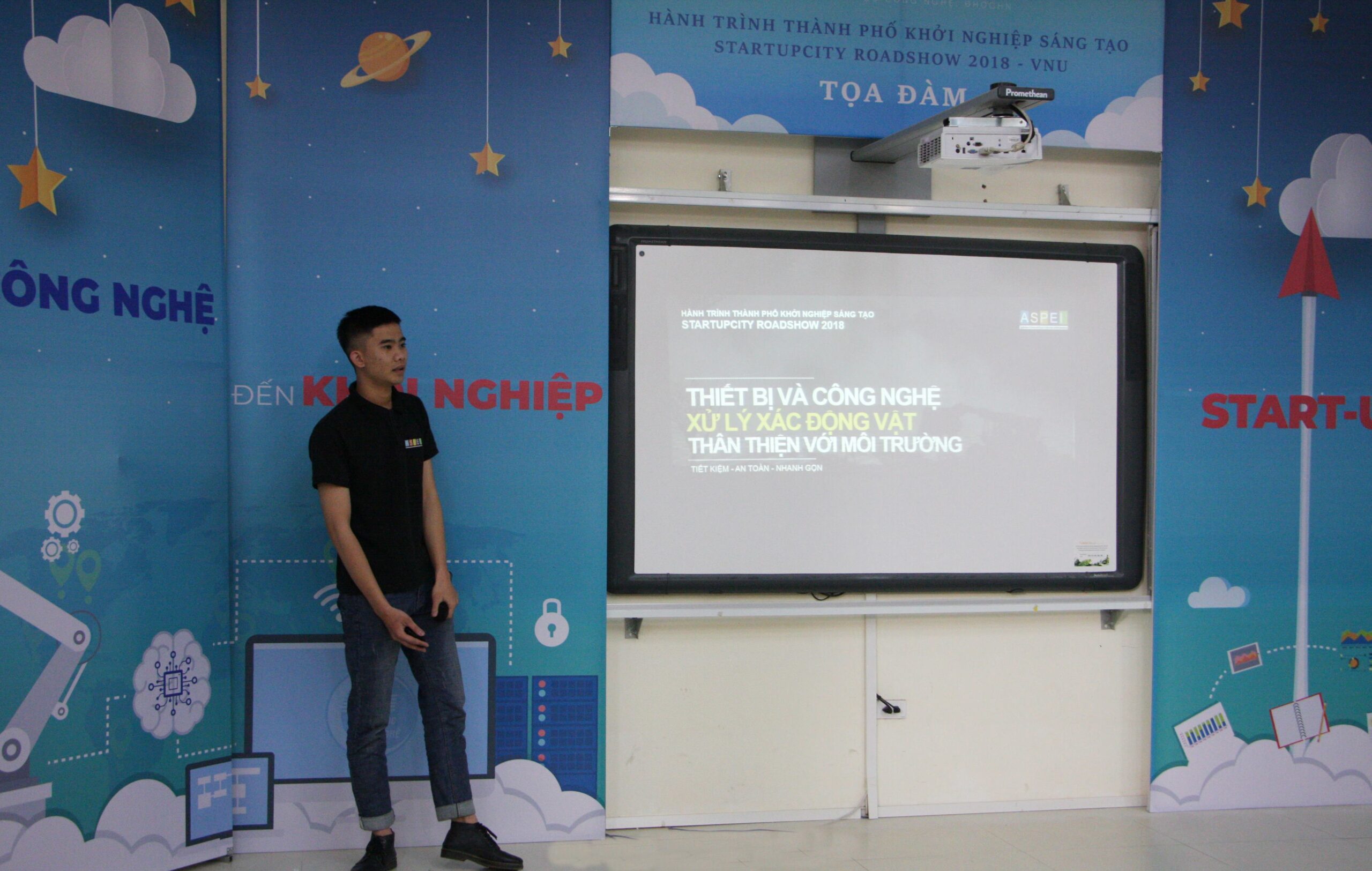 Vượt qua 08 ý tưởng tại cuộc thi, ý tưởng về “Thiết bị và công nghệ xử lý xác động vật thân thiện với môi trường” của nhóm sinh viên Aspei được các doanh nghiệp đánh giá cao và giành giải Nhất. Sau khi nhận giải thưởng, nhóm trưởng Lê Công Chính chia sẻ, mục đích ban đầu nhóm tham gia cuộc thi là mong muốn được cọ xát, học hỏi kinh nghiệm và giới thiệu công nghệ mới thân thiện với môi trường đến mọi người. Nhưng niềm vui vỡ òa khi Ban tổ chức thông báo kết quả, các thành viên trong nhóm đều rất bất ngờ. Qua đây, nhóm cũng xin gửi lời cảm ơn tới thầy Bùi Đình Tú – người thầy đã hướng dẫn, giúp đỡ cho nhóm rất nhiều để hoàn thành dự án này.