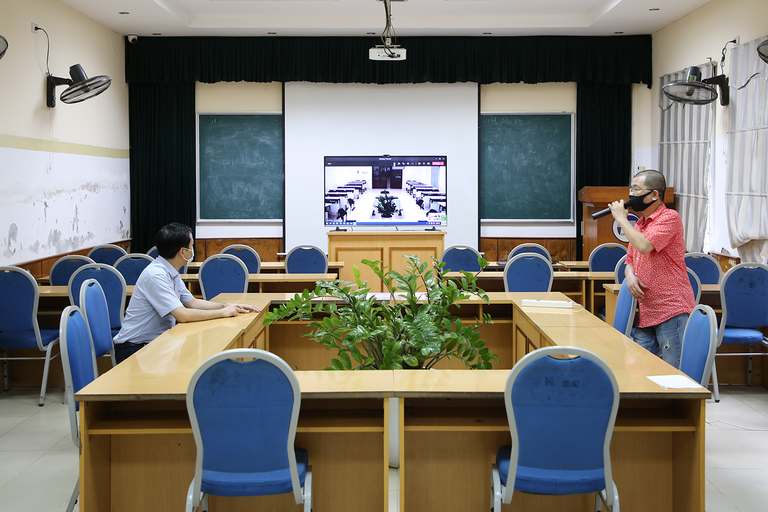 Mặc dù là năm đầu tiên Nhà trường triển khai lễ bảo vệ trực tuyến, nhưng dựa trên thế mạnh công nghệ thông tin và kinh nghiệm trong ứng dụng đào tạo trực tuyến, Trường ĐHCN đã tích cực chuẩn bị sẵn sàng cho công tác thi và bảo vệ đồ án/khóa luận trực tuyến trong bối cảnh đại dịch Covid-19 diễn biến phức tạp và kéo dài.