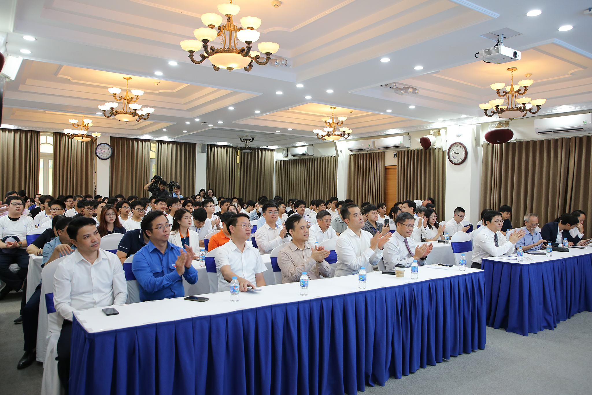 Bên cạnh đó, Hiệu trưởng nói đến các chủ trương quan trọng của Đảng và Chính phủ như Nghị quyết 57-NQ/TW, Nghị quyết 68-NQ/TW về phát triển khoa học công nghệ và đổi mới sáng tạo, đồng thời kỳ vọng các tài năng trẻ sẽ sớm biến kiến thức thành sản phẩm thực tiễn, trở thành những nhà sáng tạo, nhà lãnh đạo công nghệ trong tương lai.