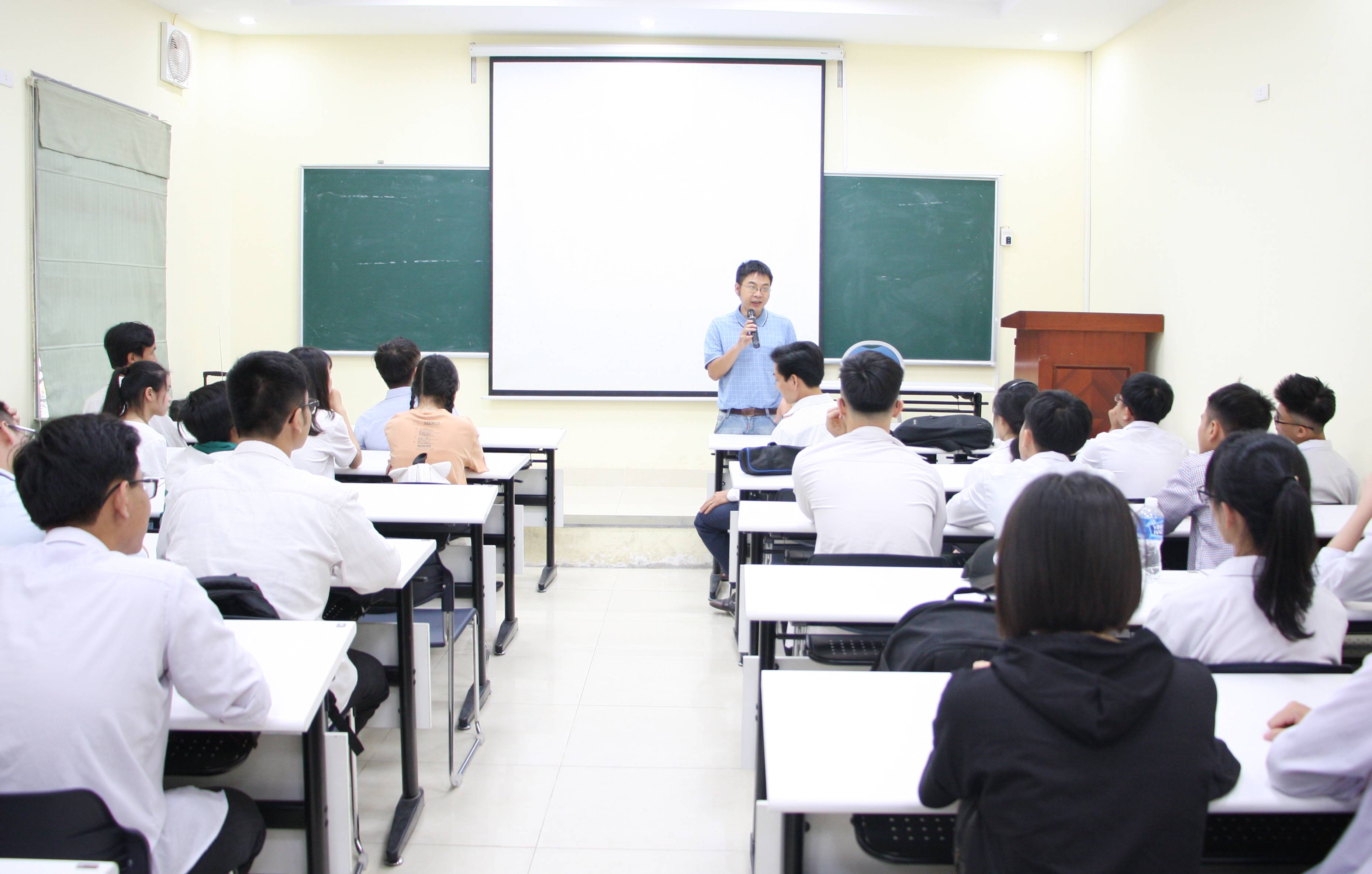 ThS Hồ Đắc Phương đã trò chuyện với các em học sinh về những thành tựu, sản phẩm khoa học công nghệ được áp dụng trên thế giới nói chung và ở Việt Nam nói riêng hiện nay. Trong đó, công nghệ phát triển sẽ luôn có hai mặt, một mặt công nghệ giúp cuộc sống con người phong phú hơn nhưng mặt khác công nghệ cũng tiềm ẩn những rủi ro. Ngày nay, top 5 công ty vốn hóa lớn nhất thế giới không phải là công ty dầu mỏ, ngân hàng mà là Google, Facebook, Amazon, Microsoft, Apple – đó là những công ty nắm giữ dữ liệu và có tập đoàn code.Trong thời đại này, bạn nắm giữ dữ liệu, bạn mới làm chủ thế giới. Thế giới ngày nay thay đổi rất nhanh nhưng, chắc chắn lượng công việc của máy móc thay thế con người ngày càng nhiều. Nên tương lai các bạn phải đối diện sự cạnh tranh ngành nghề rất lớn. ThS Hồ Đắc Phương với kinh nghiệm huấn luyện và dẫn đoàn tham gia các kỳ thi Olympic Tin học quốc tế đã khẳng định trong 10 năm trở lại đây những bạn tham dự các kỳ thi Tin học quốc tế, quốc gia đều chọn Trường ĐHCN là nơi học tập. Các bạn đang trong lứa tuổi đẹp nhất nếu các bạn đặt mục tiêu lập trình tốt, thắp lên cho bản thân ước mơ thì các bạn sẽ làm được nhiều việc. Tại sao không nghĩ đến chuyện các bạn có thể thay đổi thế giới, trở thành Bill Gates thế hệ mới. Thời điểm này các bạn có nhiều cơ hội được tiếp cận công nghệ, nên các bạn có thể đạt được thành công.