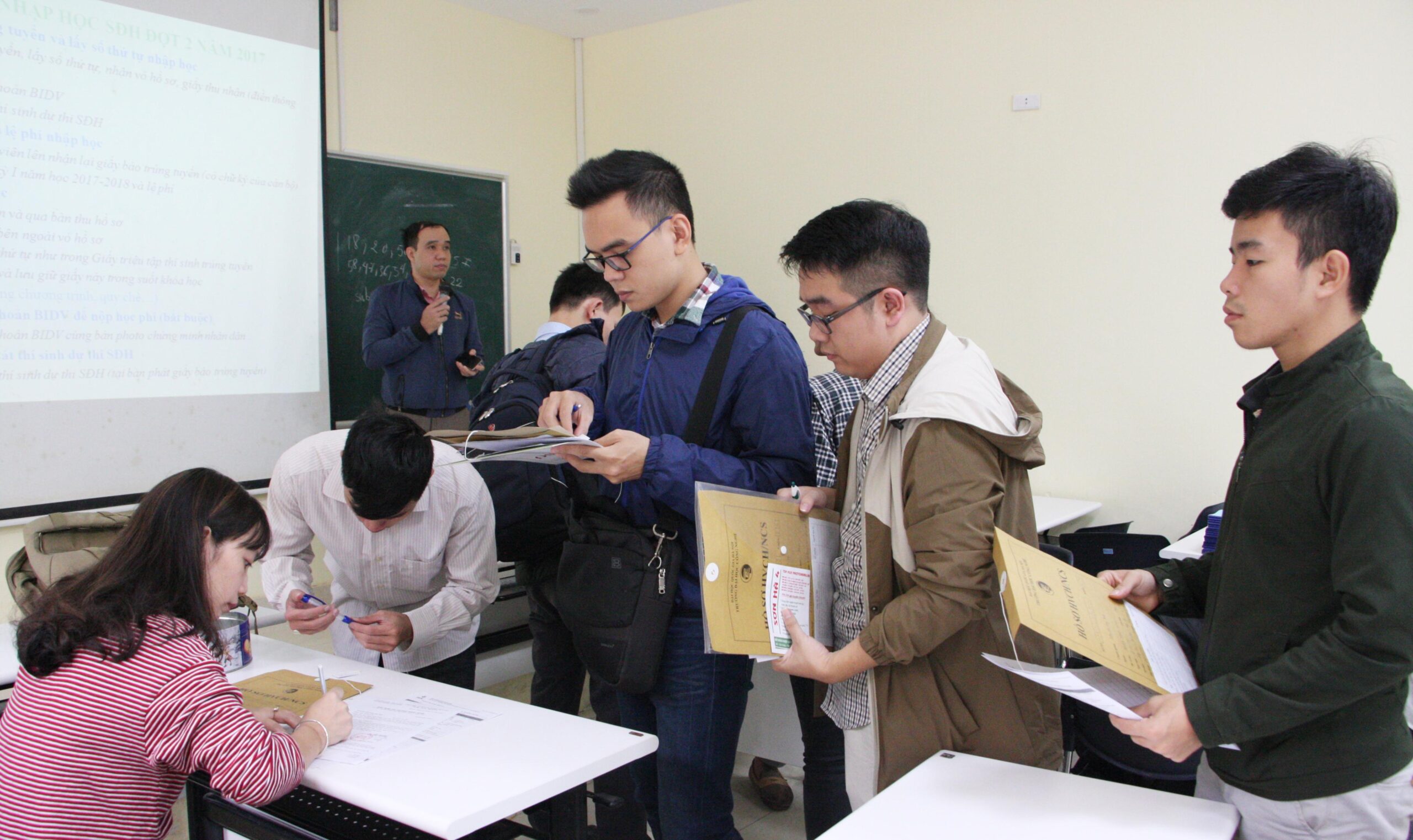 Các học viên và nghiên cứu sinh làm thủ tục nhập học