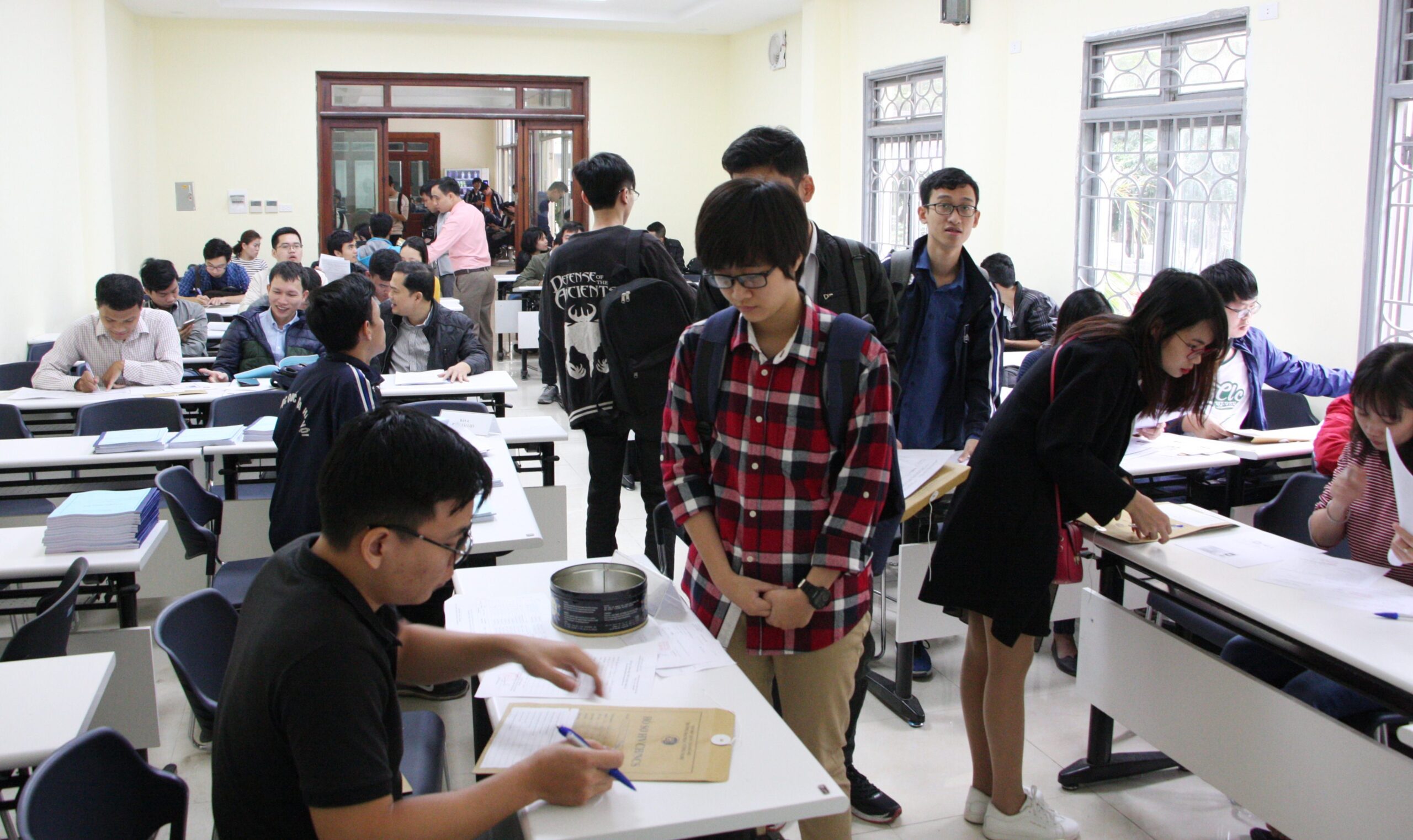 Các học viên cao học và nghiên cứu sinh làm thủ tục nhập học tại Trường ĐHCN