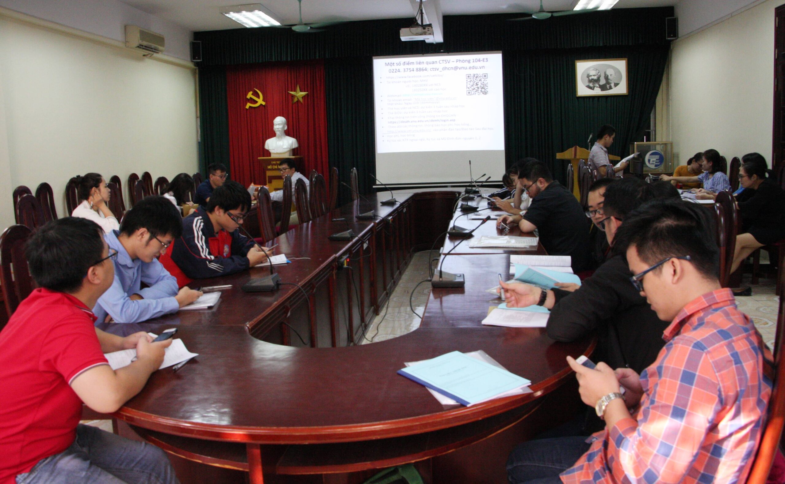 Ngay sau phần nhập học, các học viên và nghiên cứu sinh được cán bộ giới thiệu về Nhà trường, Khoa, các thông tin cần biết như quy chế đào tạo, chương trình đào tạo, tài nguyên phục vụ học tập…