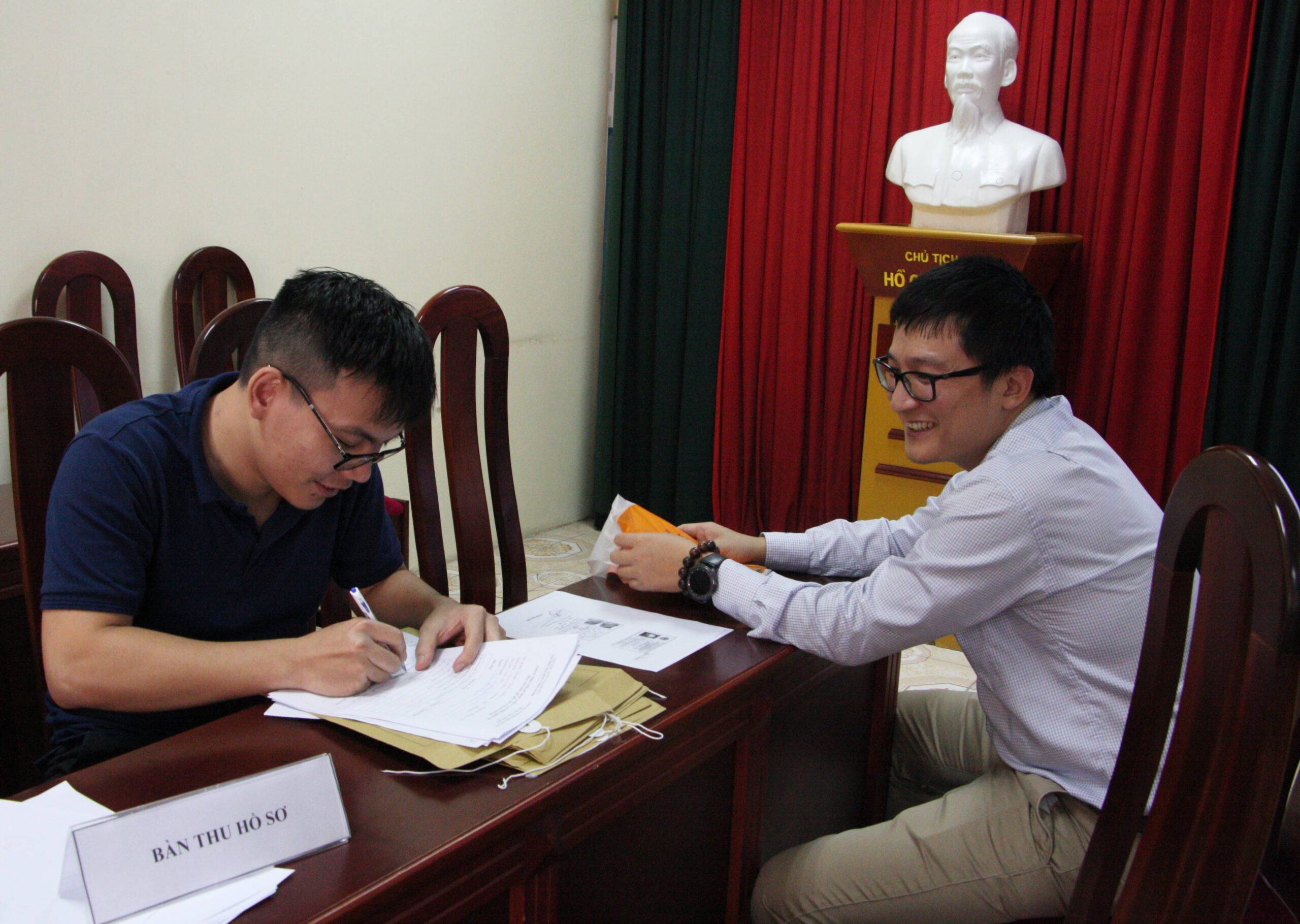 Các học viên cao học và nghiên cứu sinh lần lượt làm các thủ tục nhập học