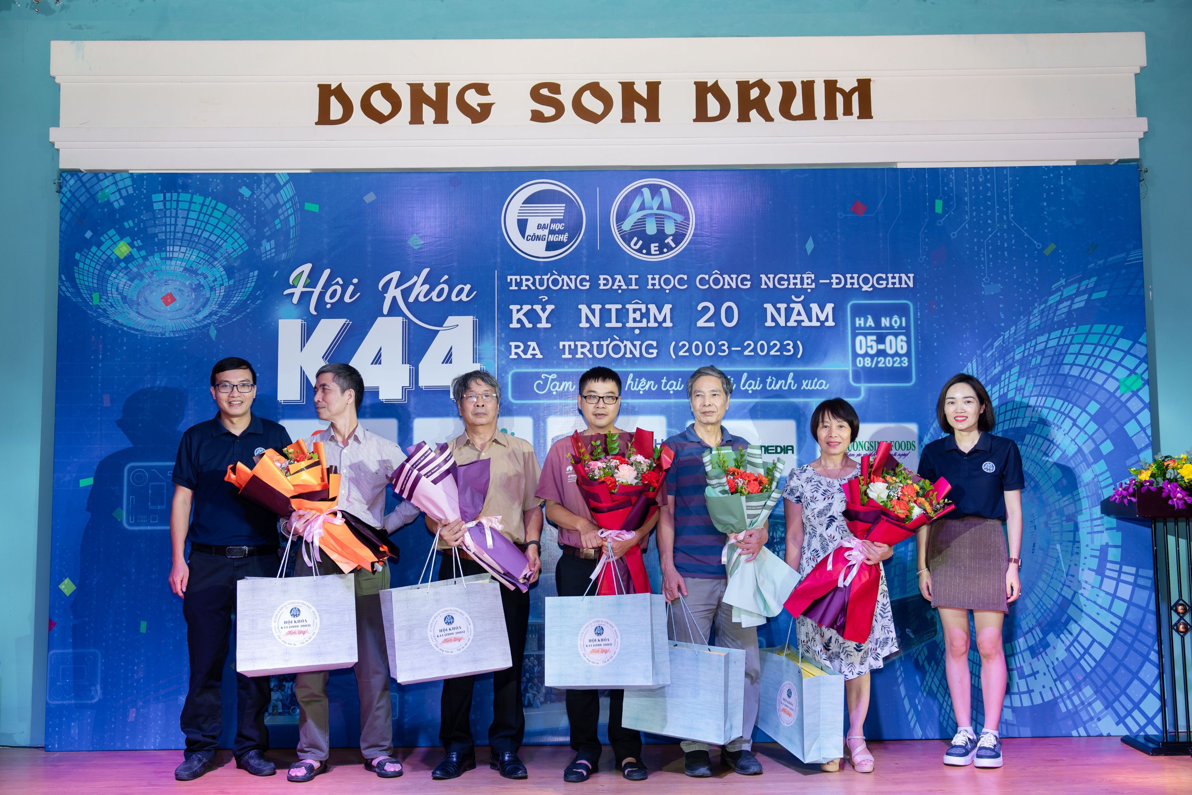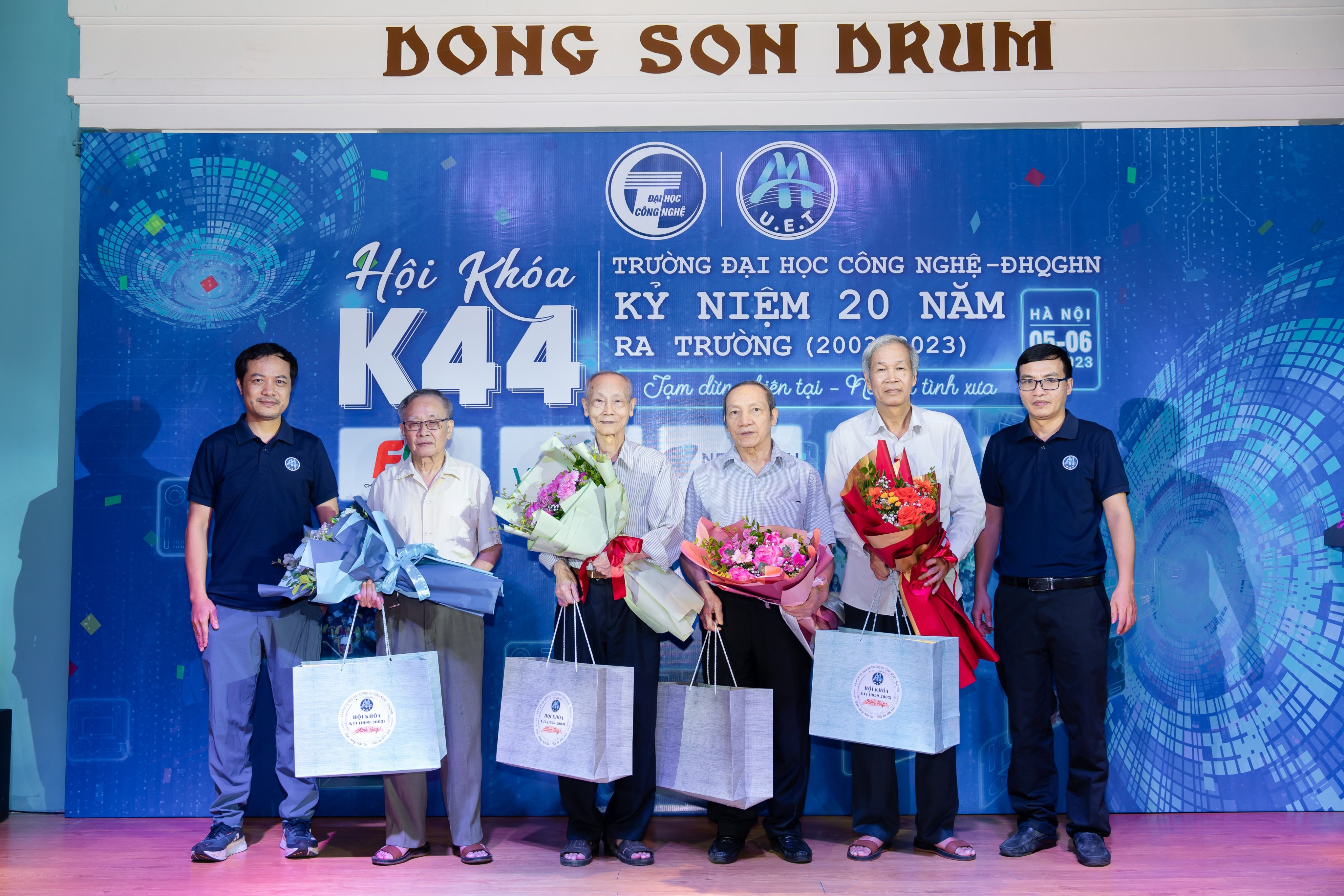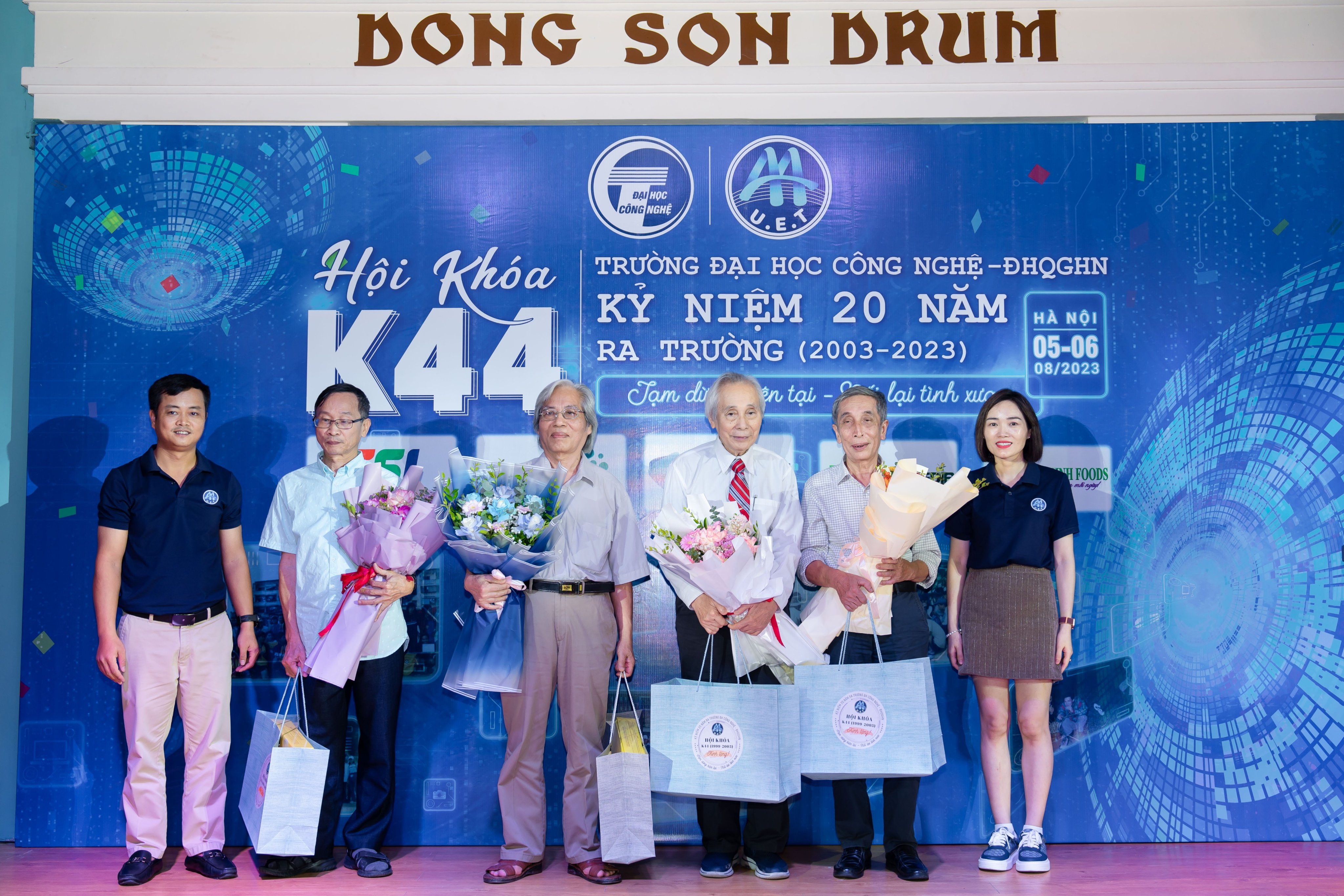 Về phía Trường ĐH Công nghệ có GS.TS Chử Đức Trình- Hiệu trưởng nhà trường, TS. Nguyễn Anh Thái – Phó Hiệu trưởng, TS. Nguyễn Thu Hương – Phó Hiệu trưởng, PGS.TS. Lê Sỹ Vinh – Chủ nhiệm khoa Công nghệ thông tin, TS. Đinh Triều Dương – Chủ nhiệm khoa Điện tử viễn thông, PGS.TS Trương Vũ Bằng Giang – Chủ nhiệm lớp 44Đ, ThS. Nguyễn Cảnh Hoàng – Chủ nhiệm lớp 44T, các thầy cô lãnh đạo các đơn vị và các thầy cô trực tiếp giảng dạy K44.