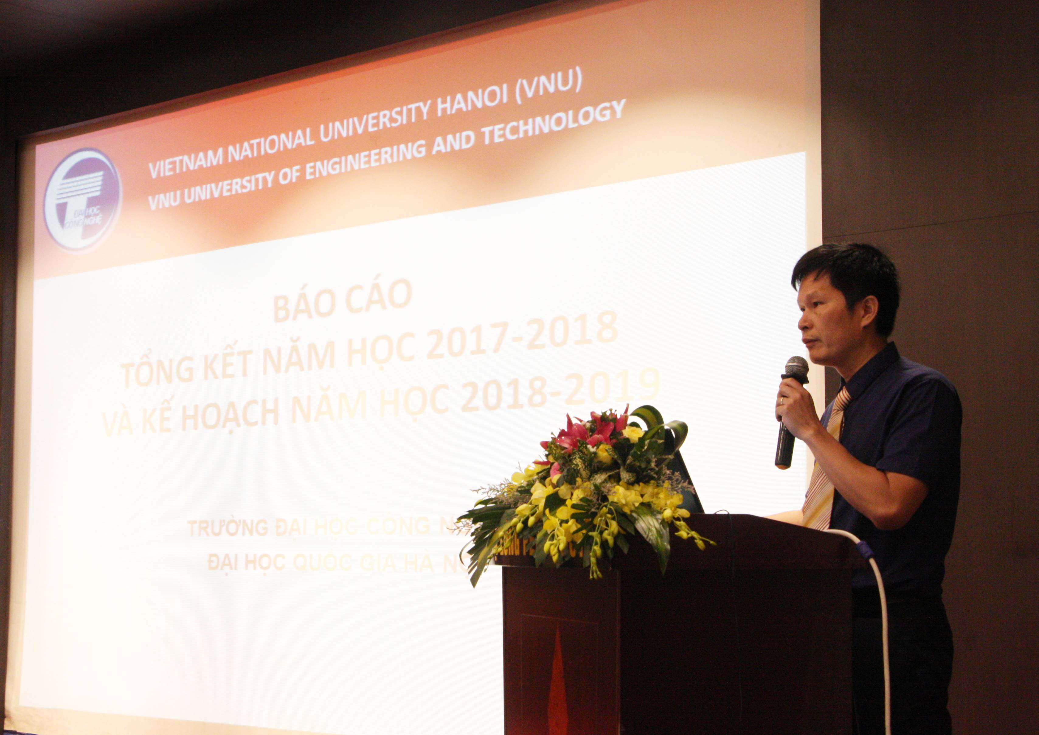 Phát biểu chỉ đạo hội nghị, Phó Giám đốc ĐHQGHN Nguyễn Hữu Đức đánh giá trong một năm qua Nhà trường đã đạt nhiều thành tích về quy mô và nâng cao thương hiệu về đào tạo, liên kết doanh nghiệp, hợp tác quốc tế. Phương hướng nhiệm vụ năm học 2018-2019 của Nhà trường tập trung tăng quy mô hiện nay về đào tạo, nghiên cứu khoa học nhằm đáp ứng xu thế phát triển 4.0 ngày nay. Để Trường ĐHCN phát triển theo đúng hướng và chiến lược ĐHQGHN đề ra Trường cần tập trung vào các vấn đề, cụ thể: