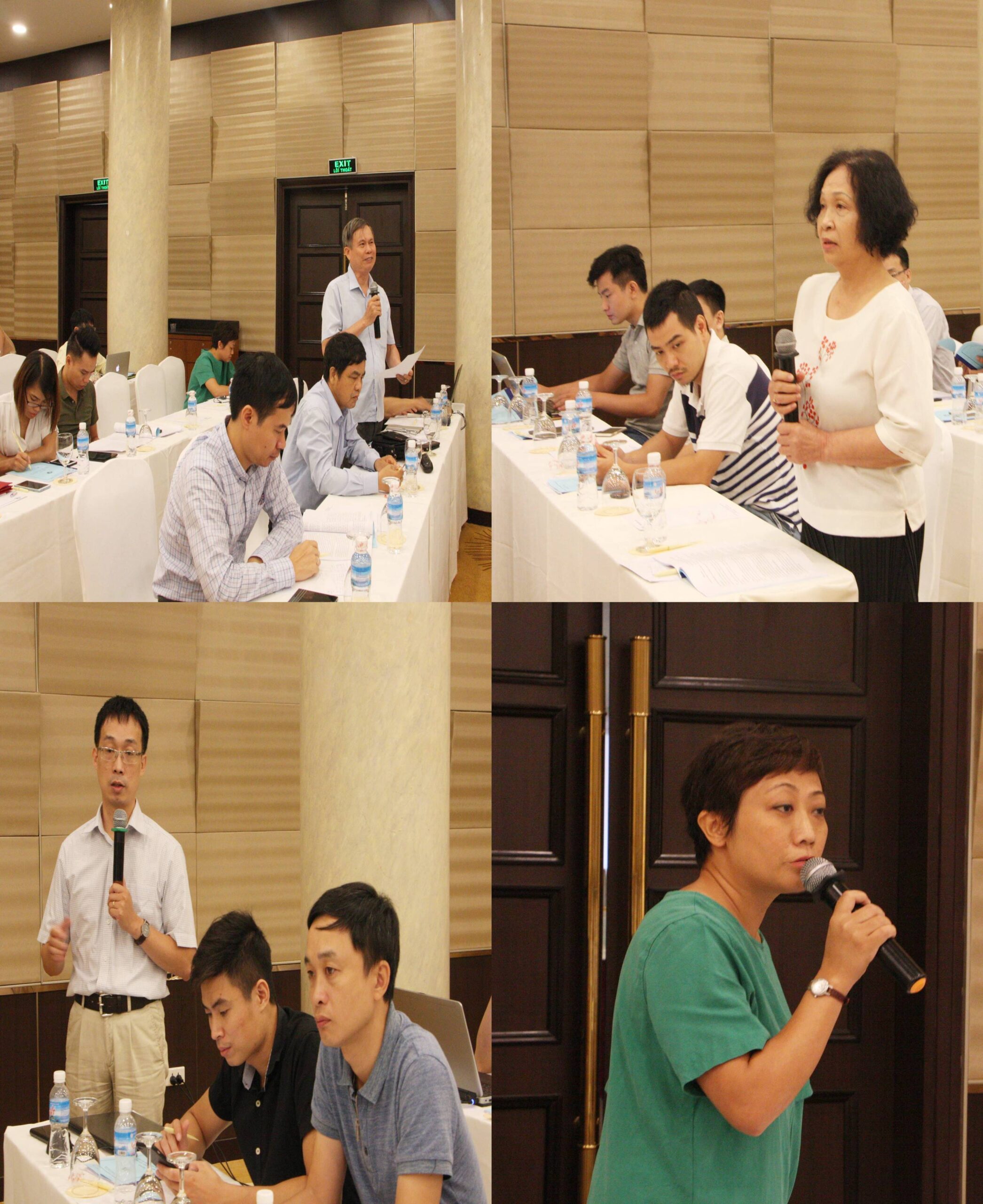 PGS.TS. Nguyễn Việt Hà (thứ hai, bên phải ảnh), PGS.TS. Phạm Bảo Sơn (ngoài cùng, bên trái ảnh), TS. Nguyễn Anh Thái (thứ hai, bên trái ảnh sang) và PGS.TS. Trịnh Anh Vũ (ngoài cùng, bên phải ảnh) chủ trì Hội nghị