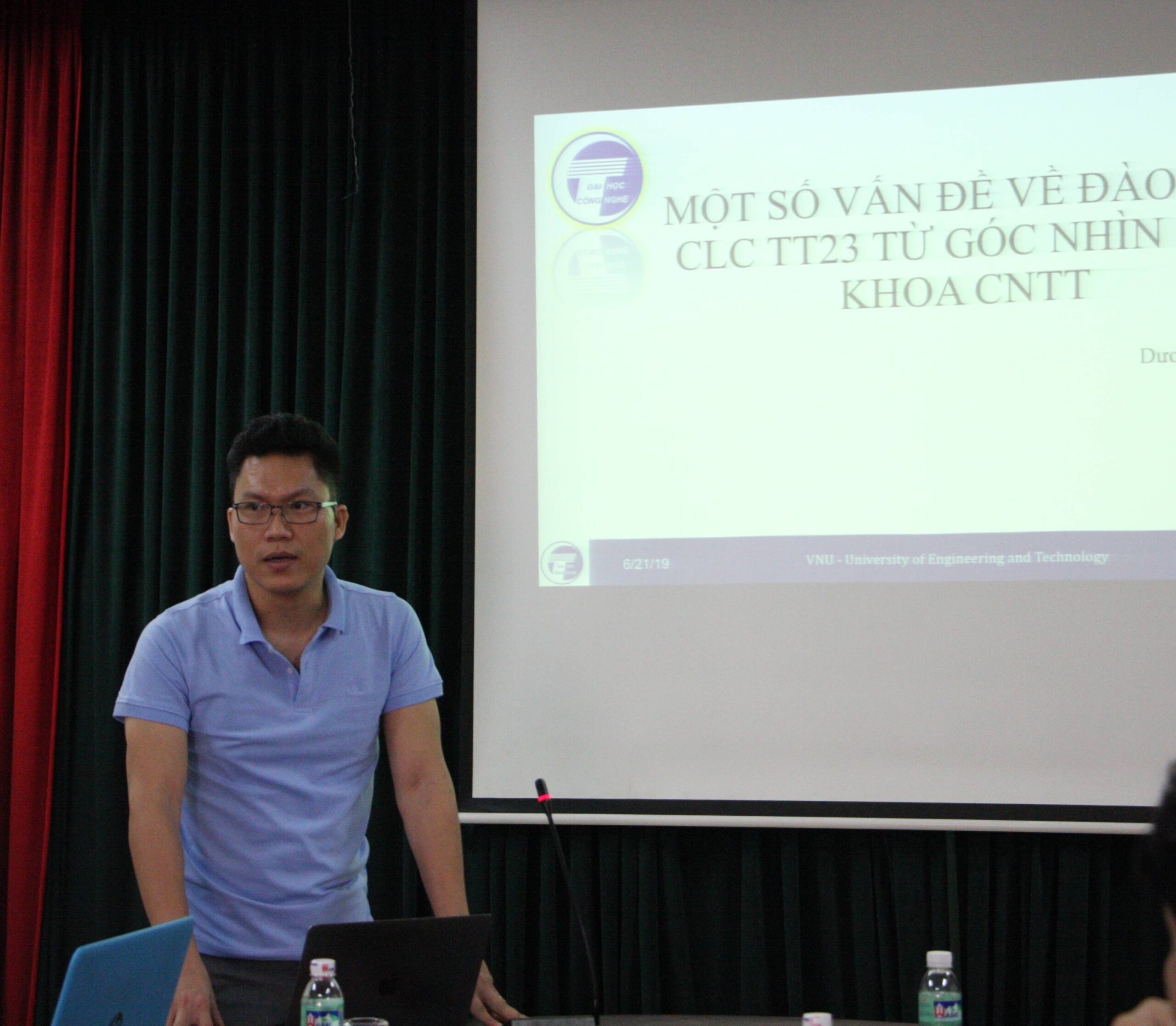 TS. Dương Lê Minh – Phó Chủ nhiệm khoa CNTT đã trình bày tham luận “Một số vấn đề về đào tạo CLC theo Thông tư 23 từ góc nhìn của khoa CNTT”