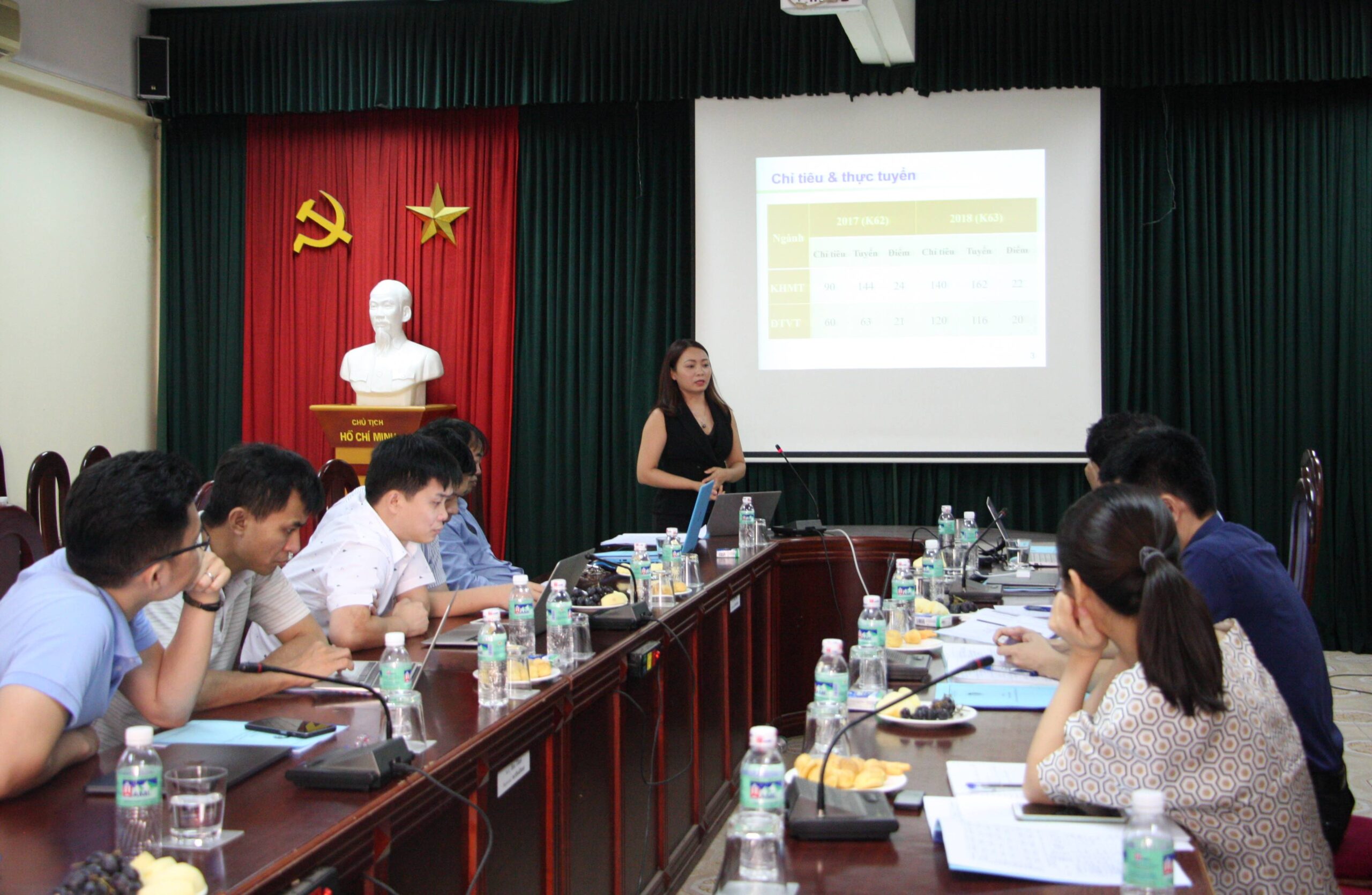 ThS. Lê Thị Phương Thoa – Phó trưởng phòng Đào tạo đã có tham luận về nguồn tuyển sinh, chất lượng tuyển sinh, chất lượng đào tạo