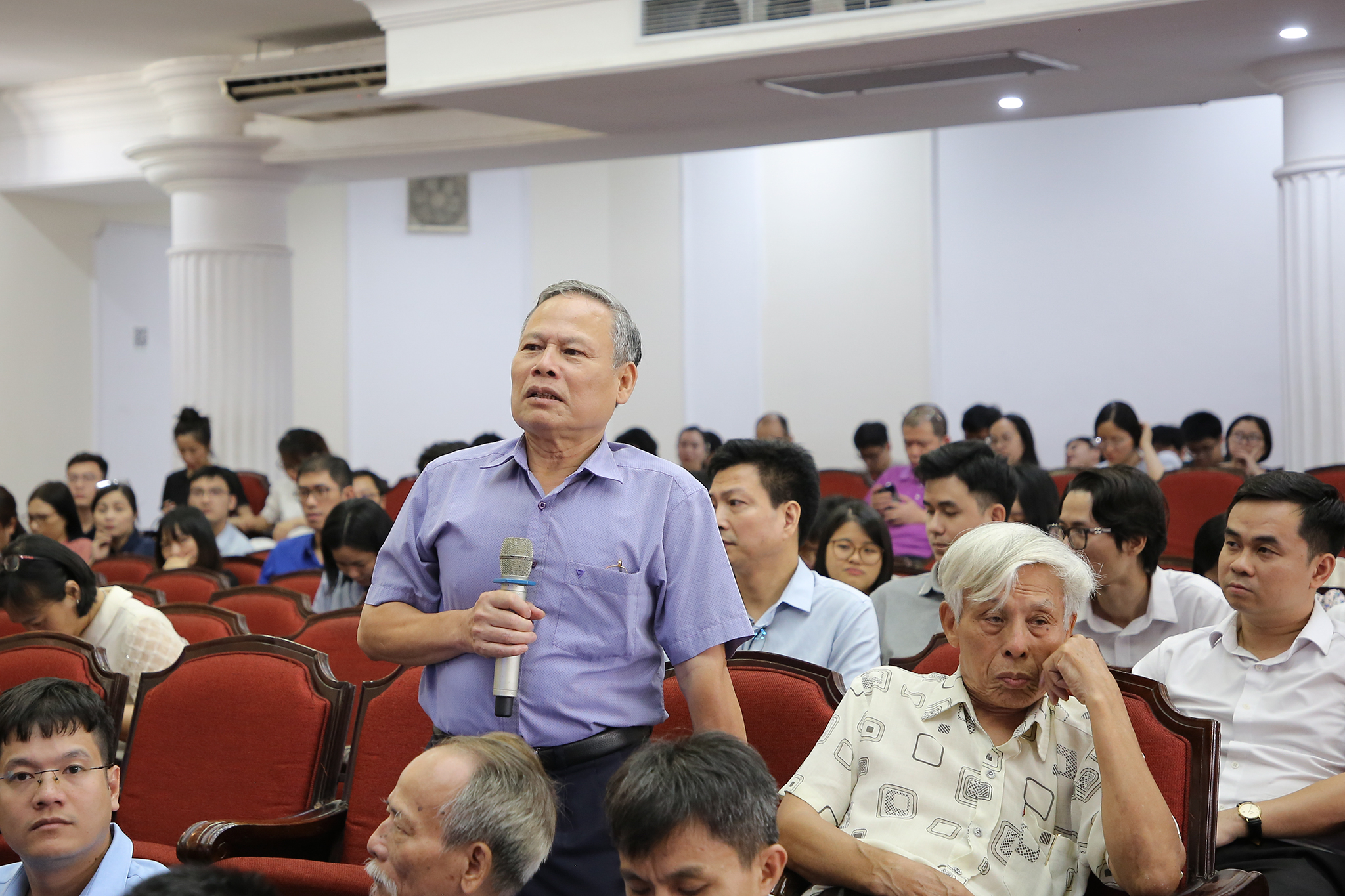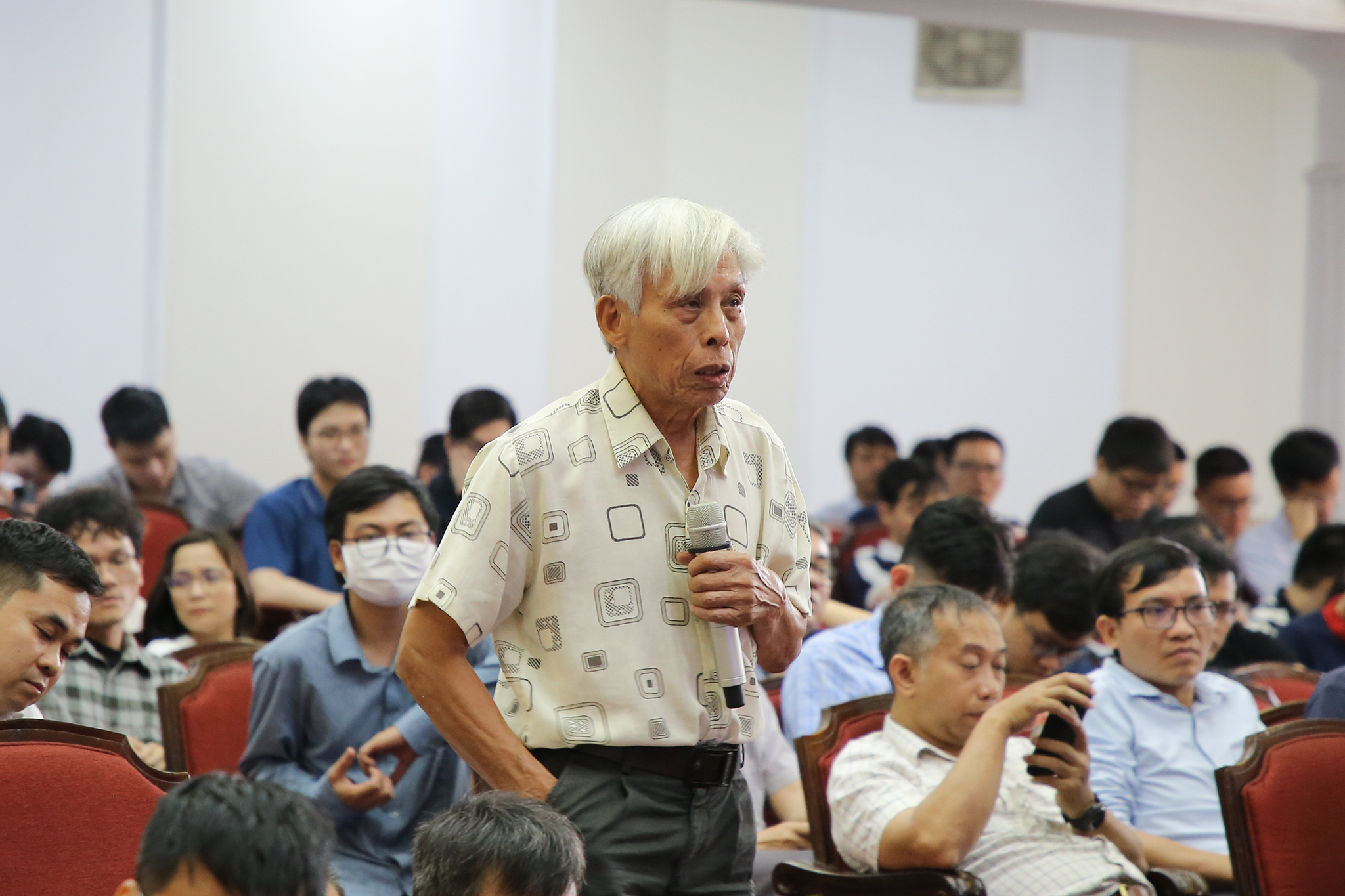 PGS.TS. NGND Hồ Sĩ Đàm – Nguyên Phó Chủ nhiệm Khoa Công nghệ (tiền thân Trường ĐH Công nghệ) đóng góp ý kiến tại Hội nghị