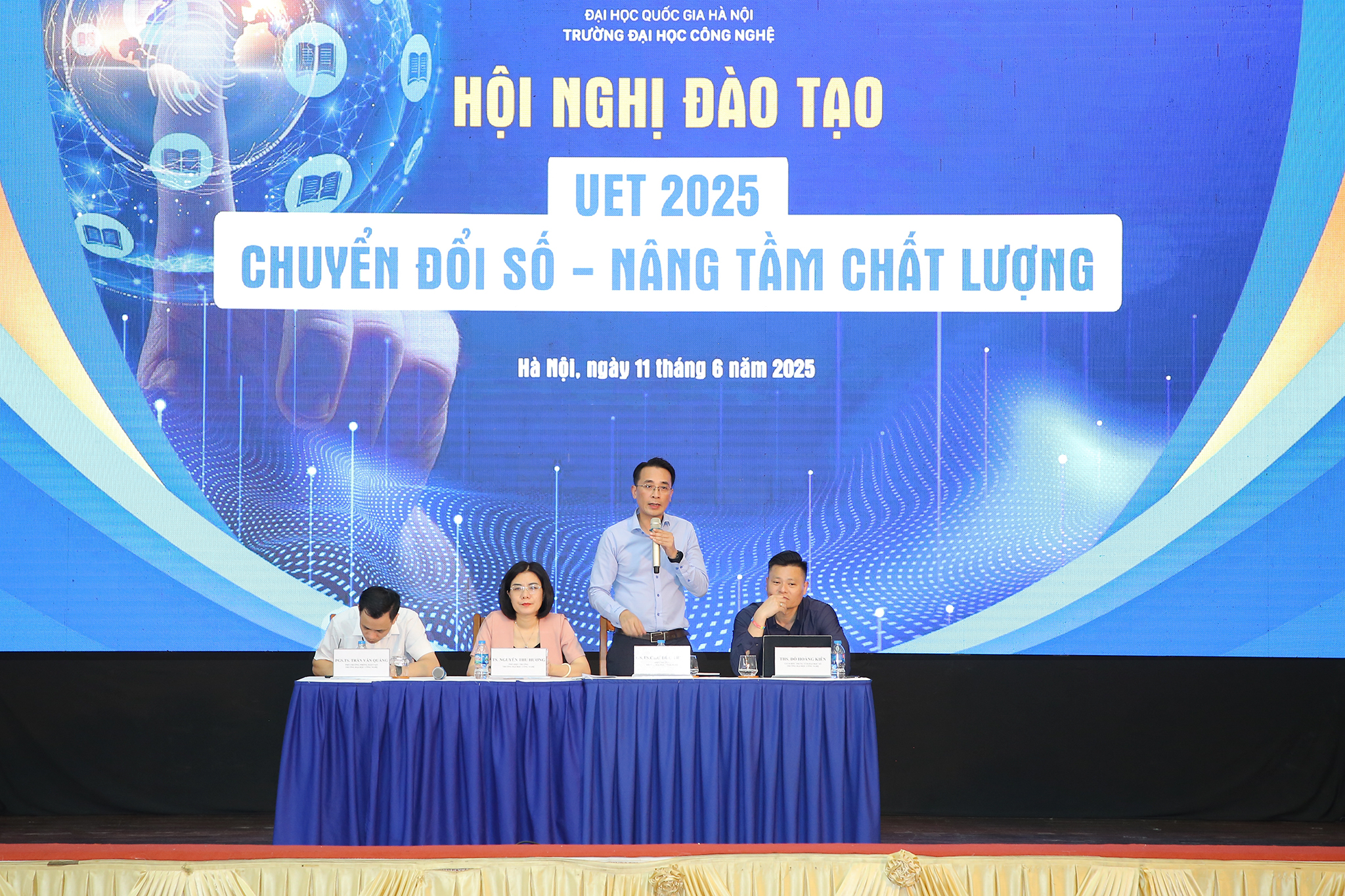 Ngày 11/06/2025, Trường Đại học Công nghệ – Đại học Quốc gia Hà Nội (VNU-UET) đã tổ chức Hội nghị đào tạo “UET 2025: Chuyển đổi số – Nâng tầm chất lượng”. Hội nghị nhằm mục tiêu làm rõ triết lý chuyển đổi số tại UET, chia sẻ mô hình triển khai thực tiễn trong việc xây dựng, quản lý chương trình đào tạo, chuẩn đầu ra – đầu vào, kiểm tra đánh giá dựa trên nền tảng số và thảo luận định hướng phát triển hệ sinh thái đào tạo số tại UET trong thời gian tới, nâng cao chất lượng, hiệu quả và trải nghiệm của người học.