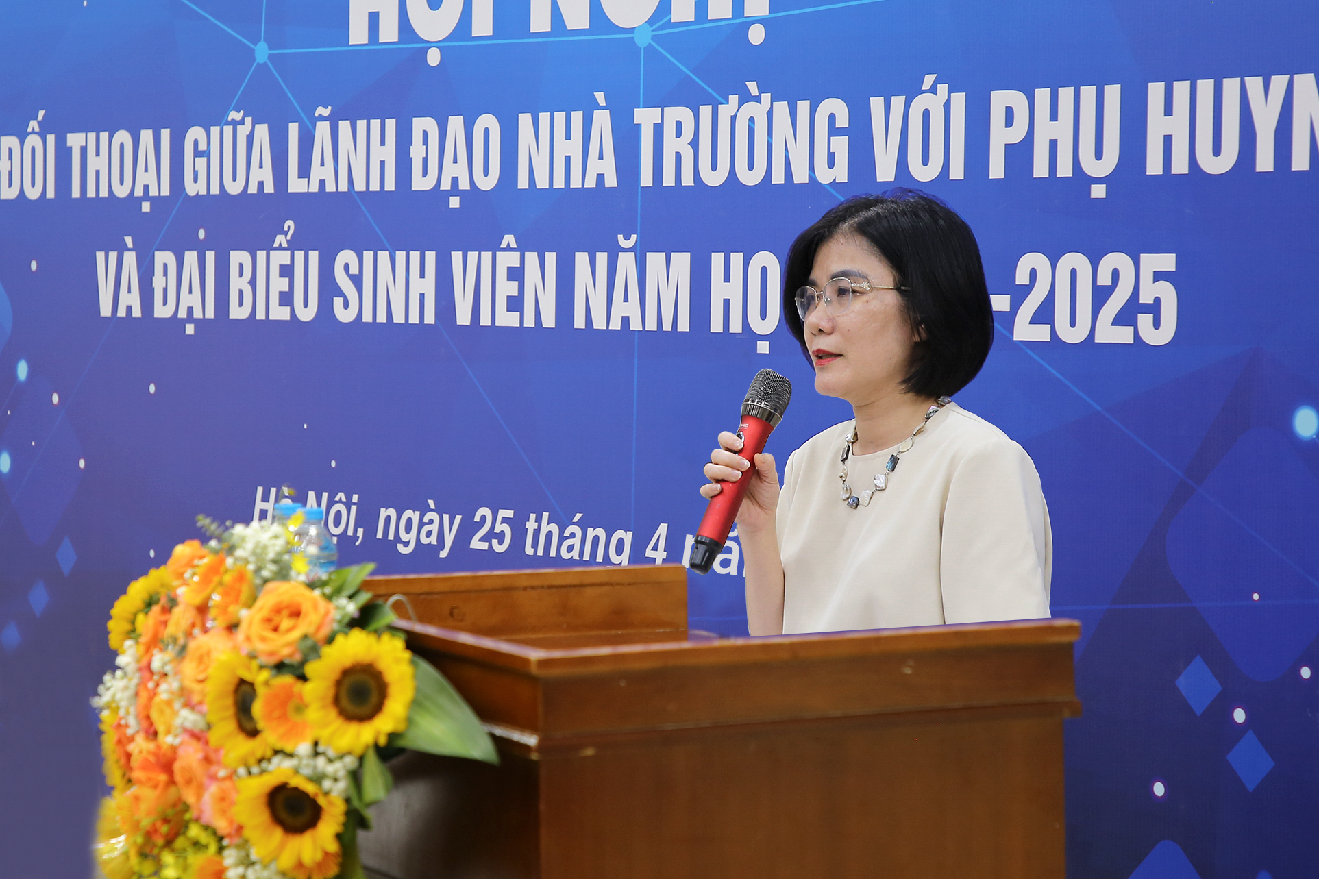 Phát biểu khai mạc Hội nghị, TS. Nguyễn Thu Hương – Phó Hiệu trưởng đã khẳng định tầm quan trọng của hoạt động đối thoại. Đây là cơ hội để Nhà trường lắng nghe tâm tư, nguyện vọng cùng những đề xuất, phản ánh của phụ huynh và người học, góp phần nâng cao chất lượng đào tạo và thực hiện sứ mạng đào tạo toàn diện, lấy người học làm trung tâm.