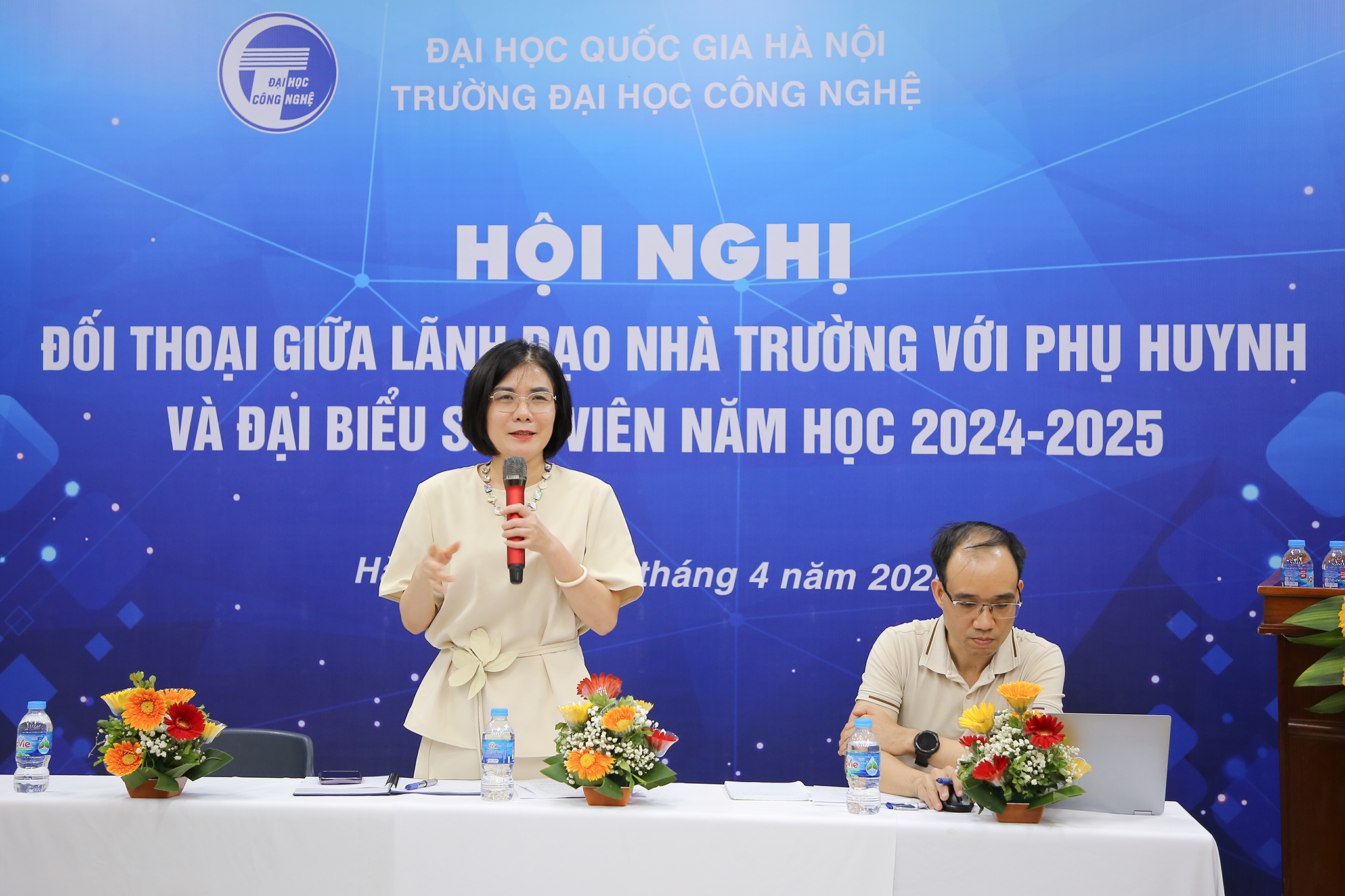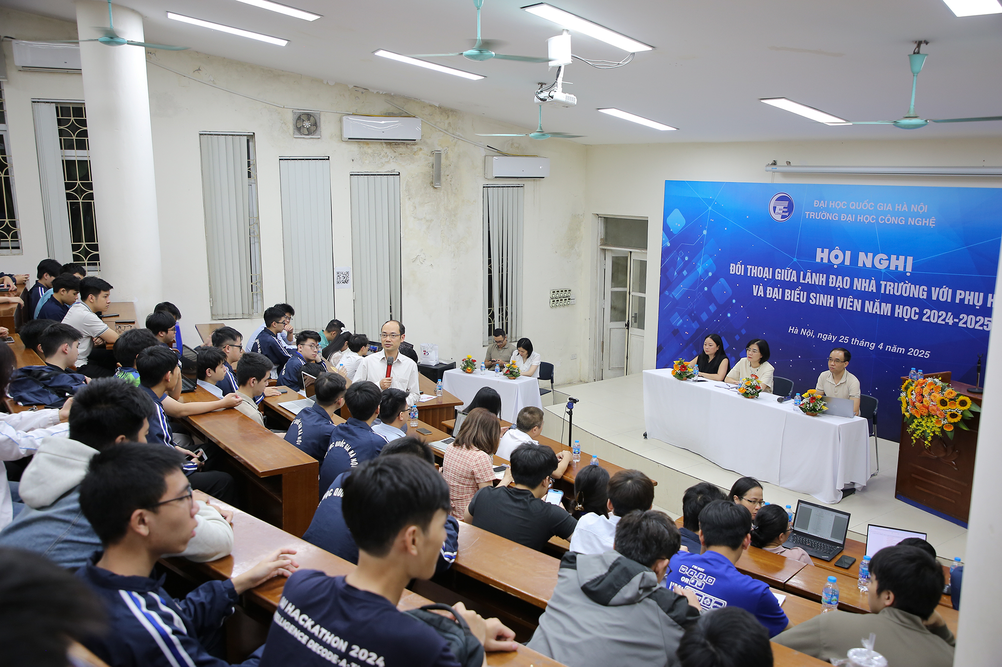 Tối ngày 26/4/2025, tại Hội trường 3-G3, Trường Đại học Công nghệ – Đại học Quốc gia Hà Nội (VNU-UET) đã tổ chức Hội nghị đối thoại giữa Lãnh đạo Nhà trường với phụ huynh và sinh viên năm 2025, kết hợp hai hình thức trực tiếp và trực tuyến.