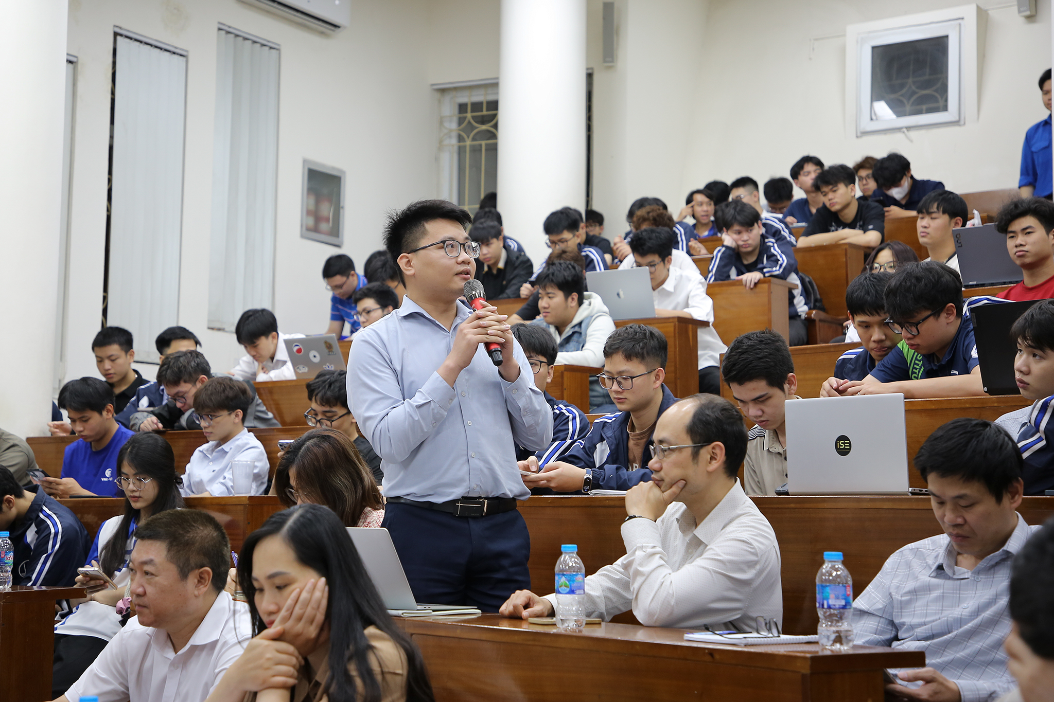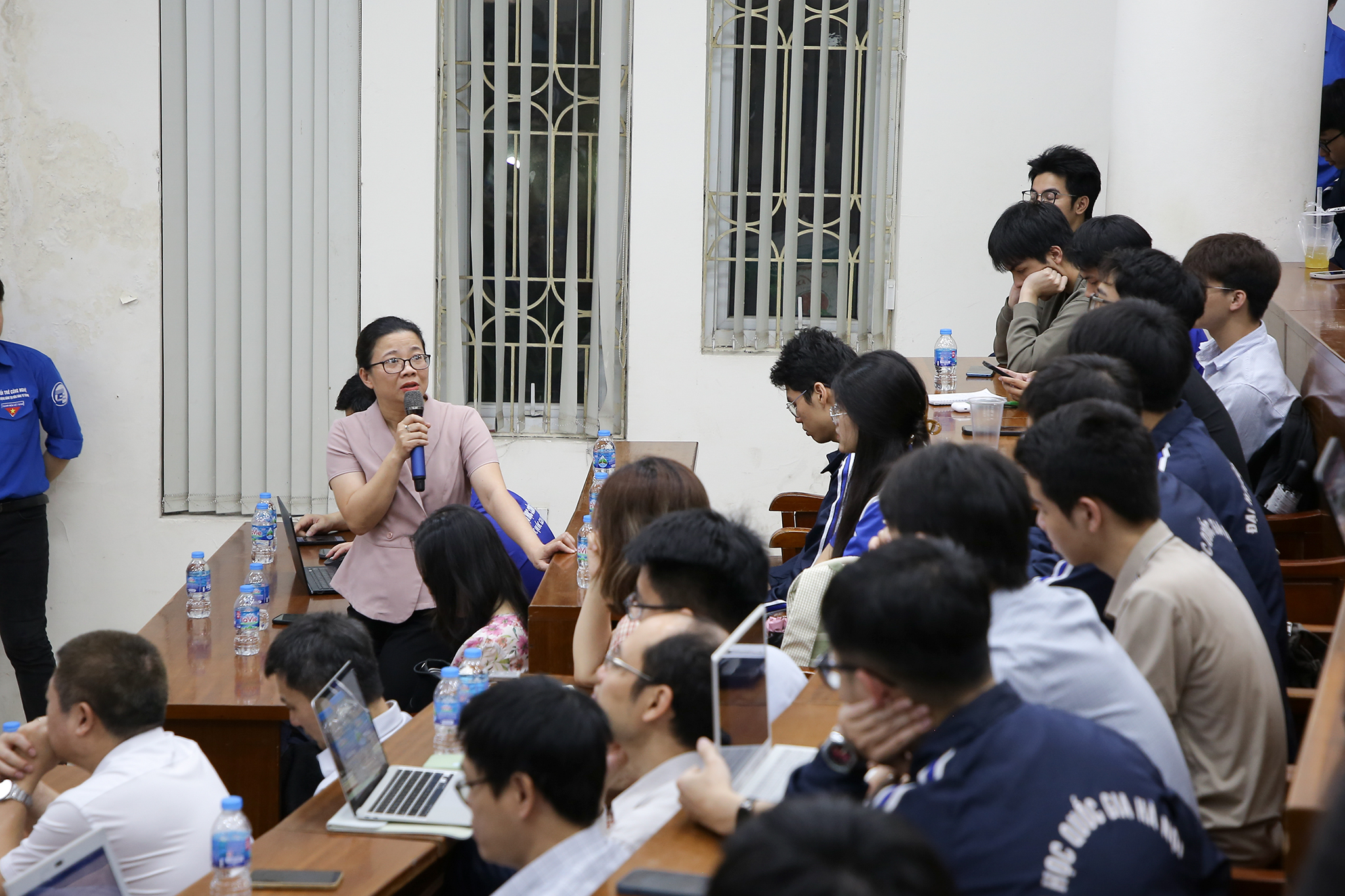 Dưới sự chủ trì của TS. Nguyễn Thu Hương – Phó Hiệu trưởng Trường Đại học Công nghệ, hội nghị đối thoại giữa lãnh đạo Nhà trường với phụ huynh và đại diện sinh viên các lớp đã diễn ra trong không khí thẳng thắn, cởi mở và mang tính xây dựng cao. Tại hội nghị, phụ huynh và sinh viên đã trực tiếp đặt nhiều câu hỏi xoay quanh các nội dung thiết thực liên quan đến quá trình học tập và rèn luyện như chương trình đào tạo, cơ sở vật chất, công tác tuyển sinh, chính sách học bổng, hoạt động nghiên cứu khoa học, cũng như các cơ hội việc làm trong bối cảnh mới khi các lĩnh vực bán dẫn, trí tuệ nhân tạo và công nghệ thông tin đang phát triển mạnh mẽ.