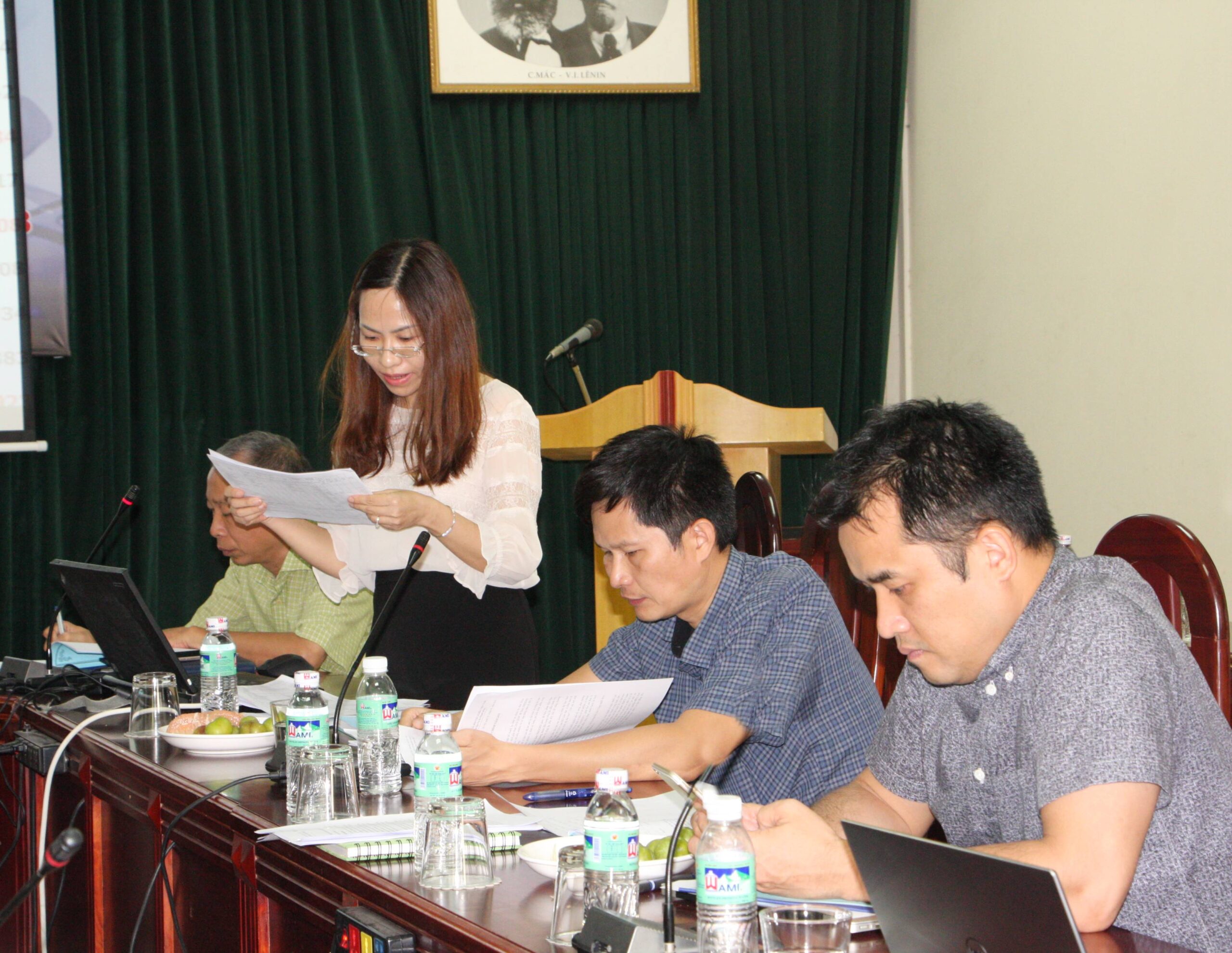 Kế toán trưởng Phạm Thị Thu Lan báo cáo công tác kế hoạch tài chính năm 2017, 6 tháng đầu năm 2018