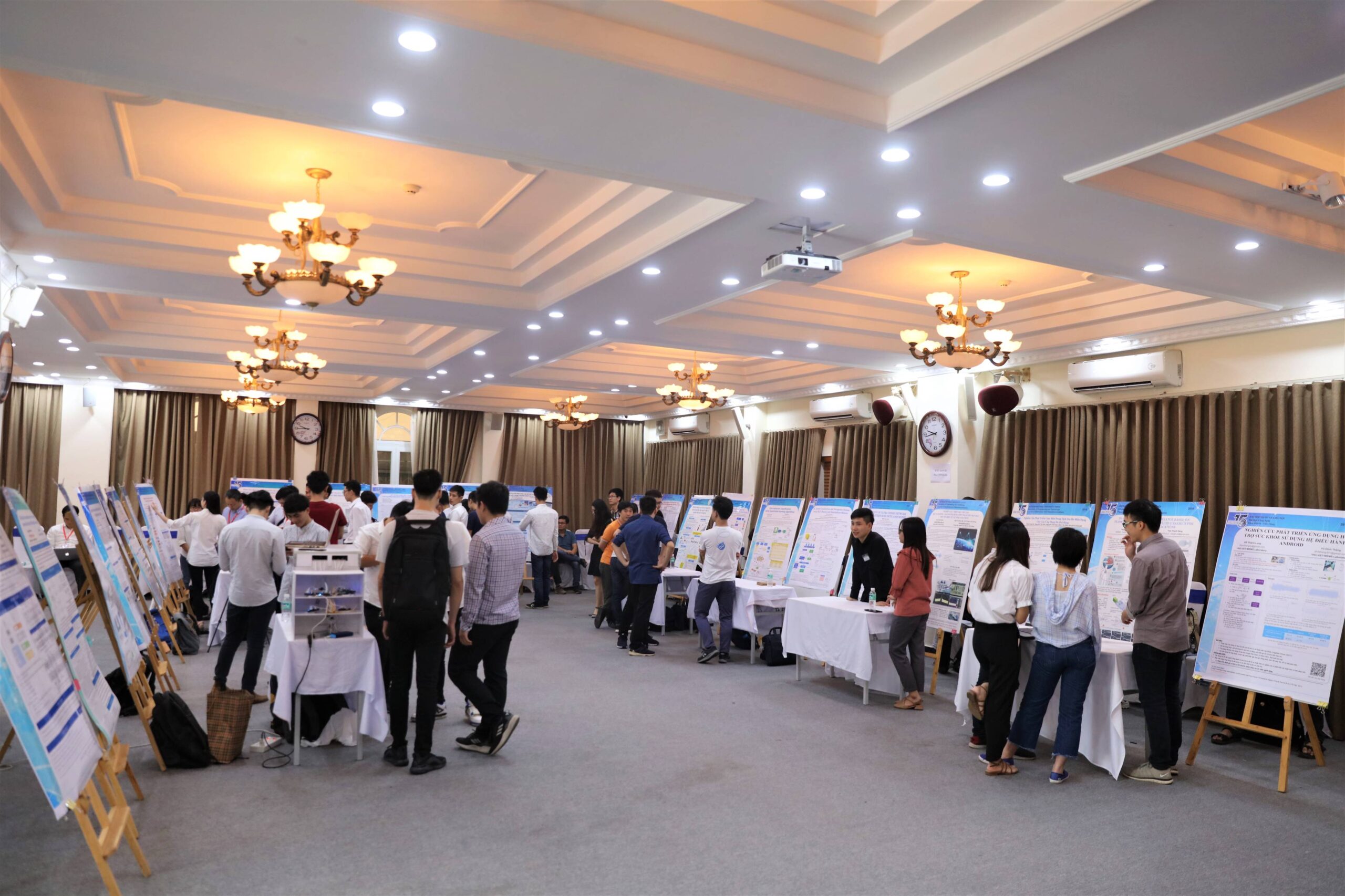 Để giúp sinh viên và hội đồng có sự tương tác, giao lưu nhiều hơn, hội nghị sinh viên NCKH tiếp tục được tổ chức theo hình thức không gian mở. Các nhóm sinh viên trình diễn, trao đổi ý tưởng và kết quả nghiên cứu với toàn thể sinh viên tham dự và các thầy cô thông qua các poster giới thiệu tổng quan về báo cáo và trình bày demo sản phẩm.