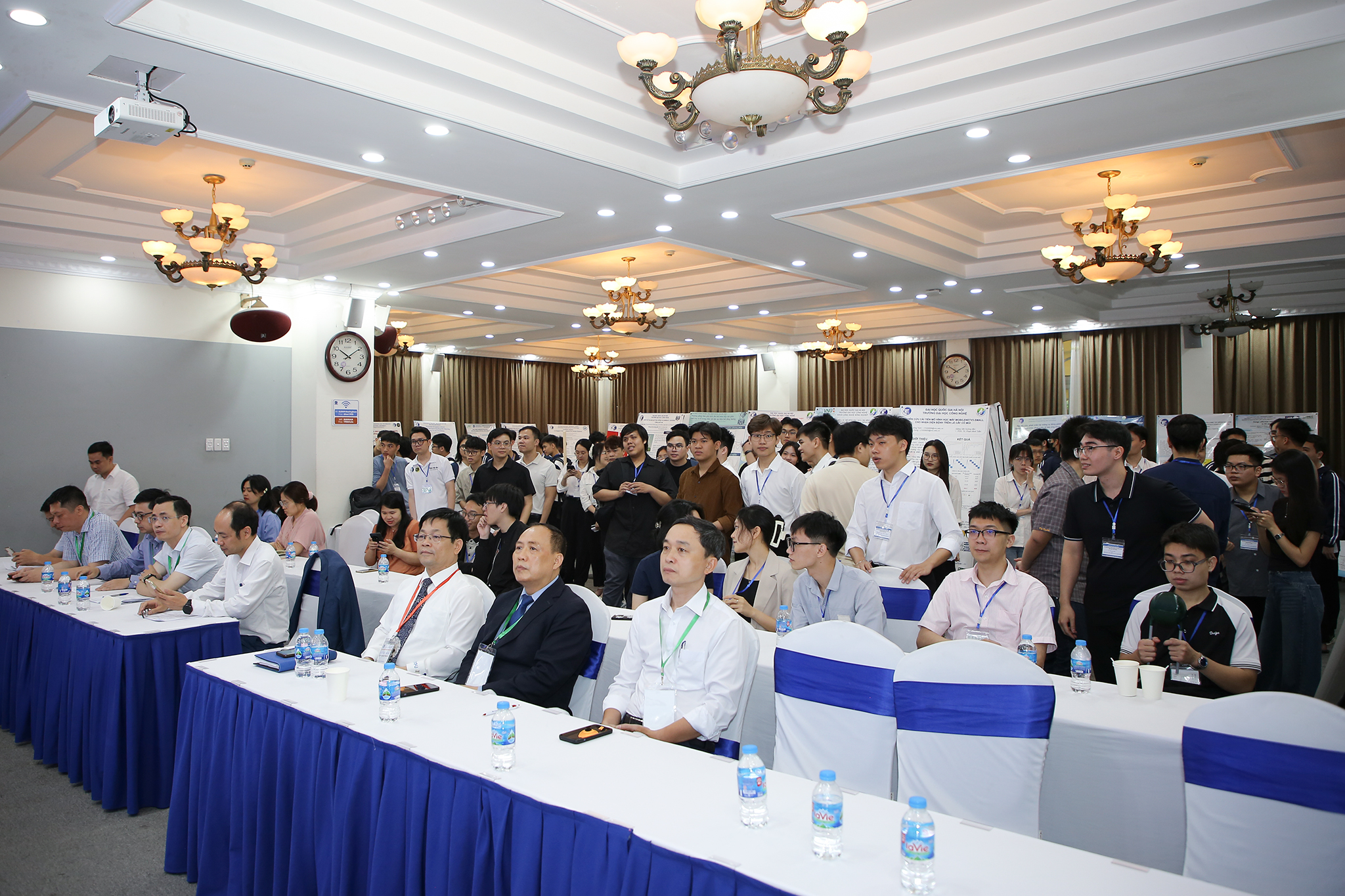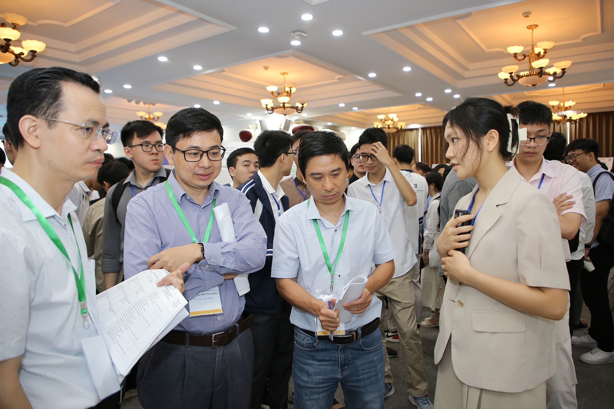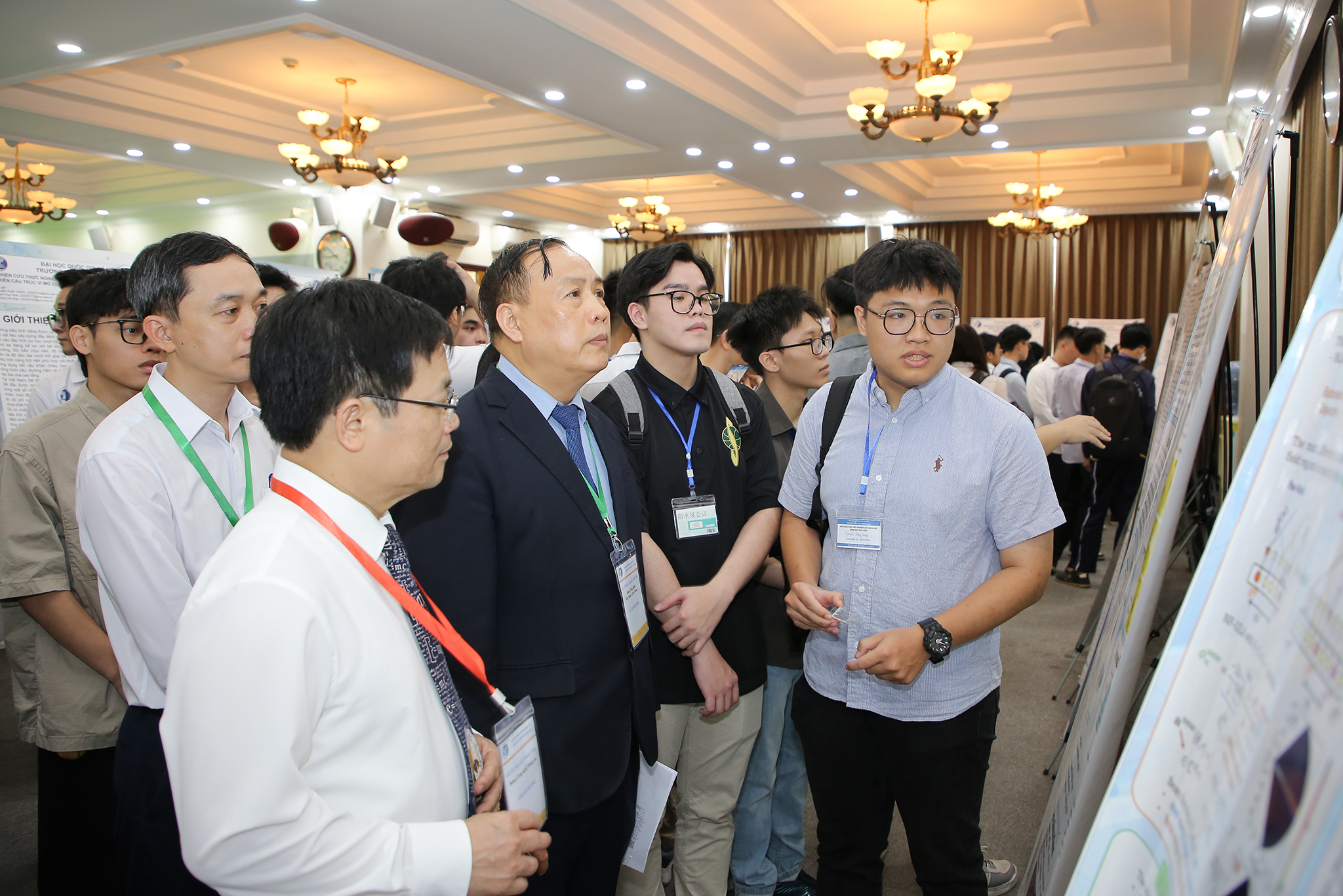 Tại Hội nghị, các nhóm sinh viên thuyết trình kết quả nghiên cứu bằng poster tại hội trường.