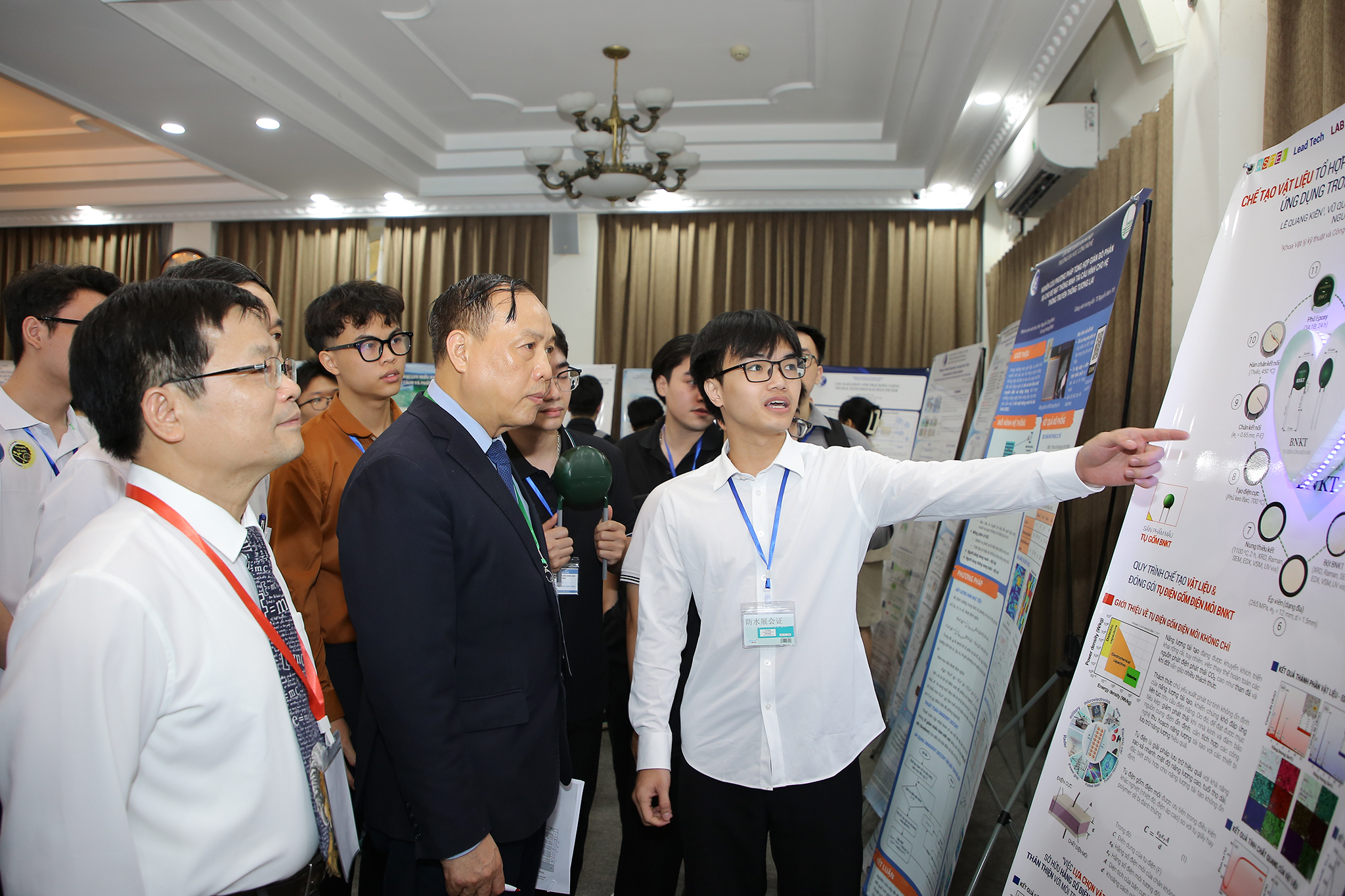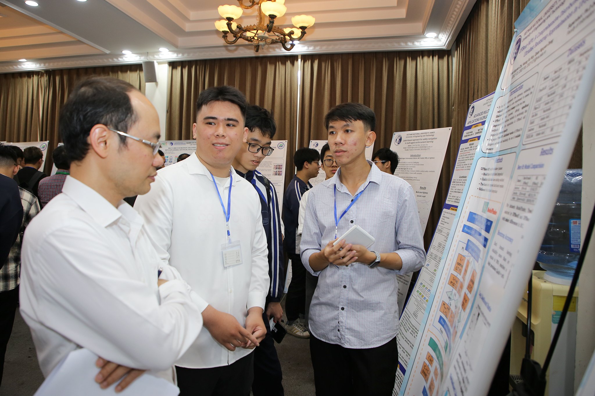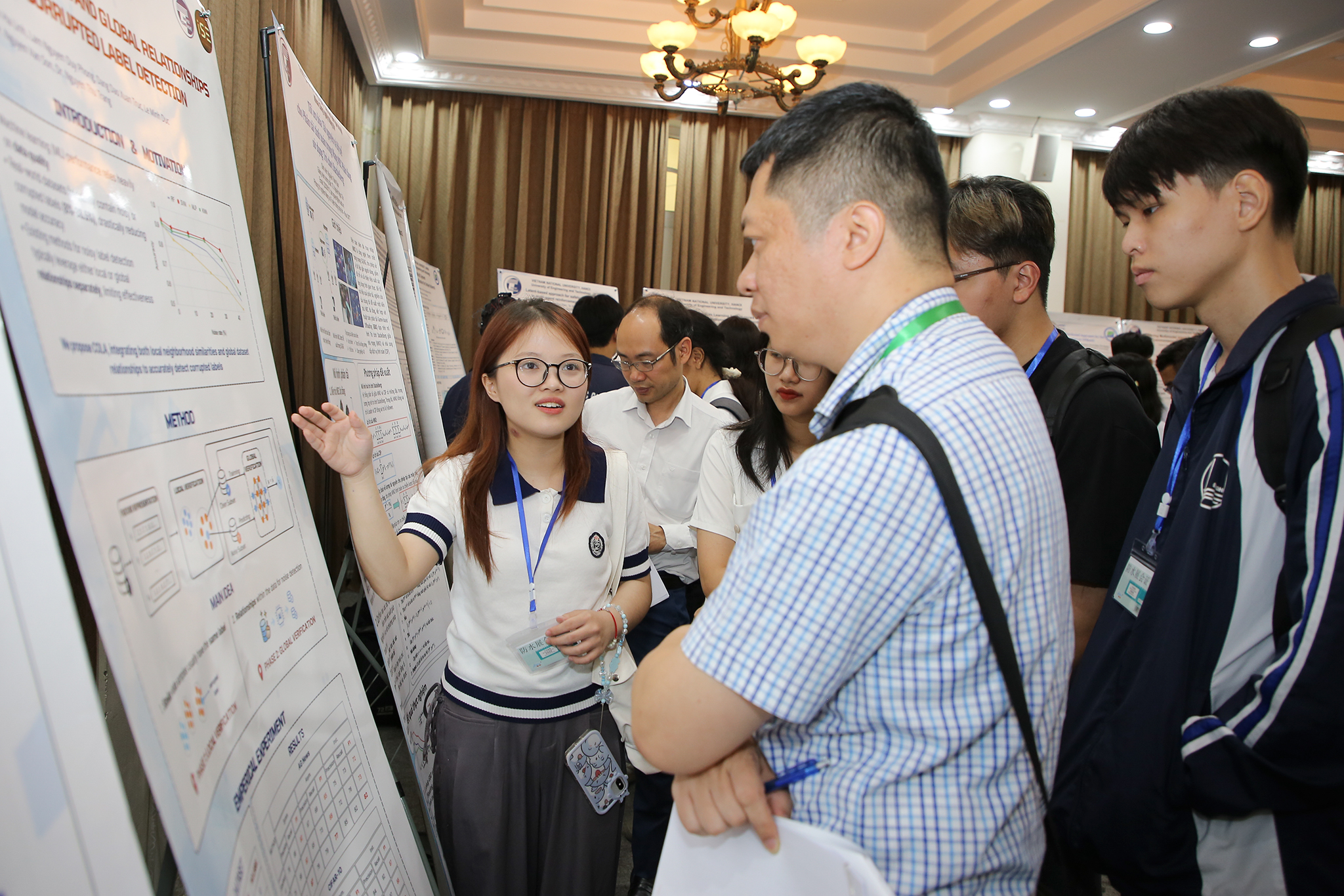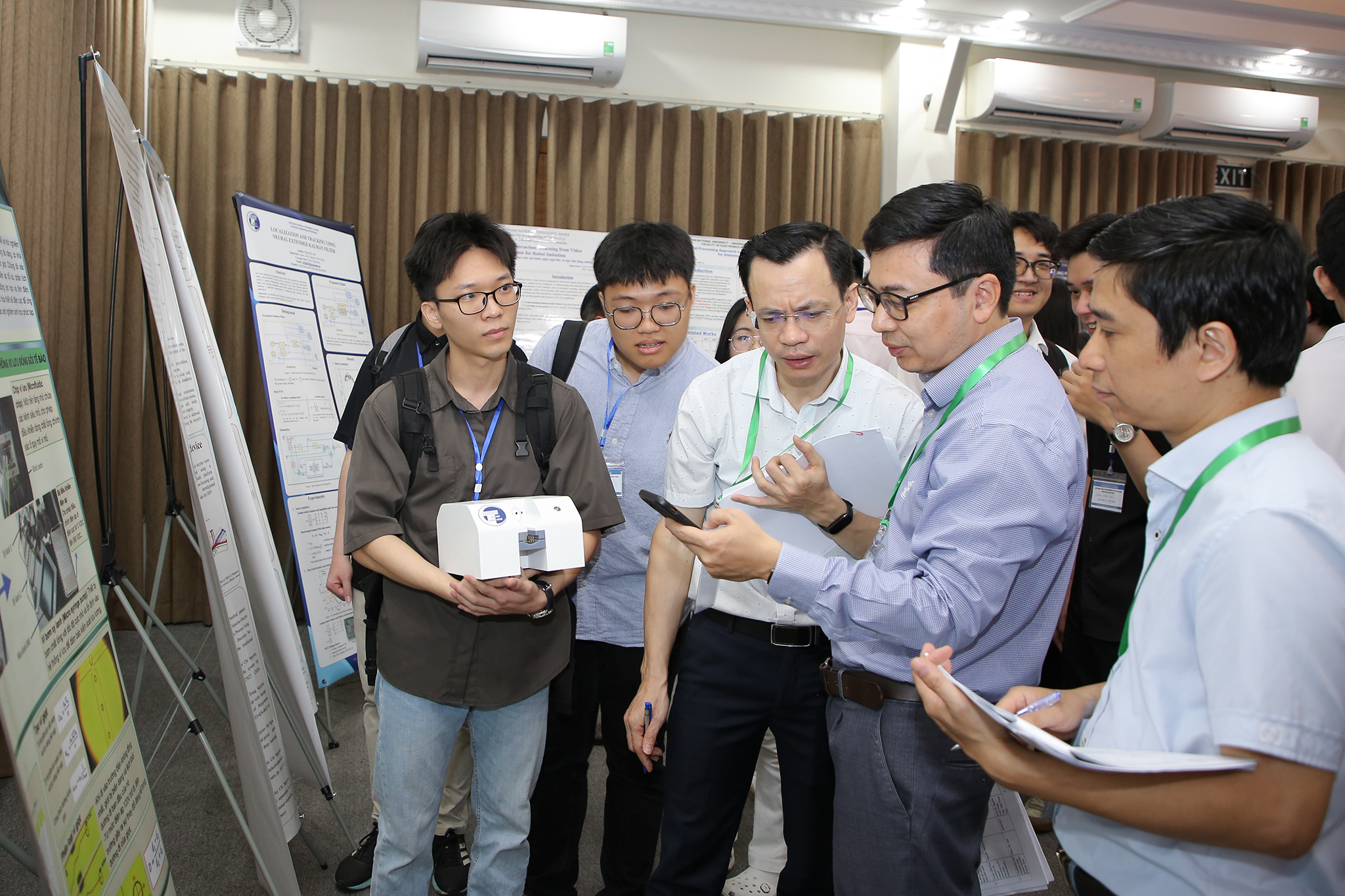 Tại Hội nghị, các nhóm sinh viên thuyết trình kết quả nghiên cứu bằng poster tại hội trường.