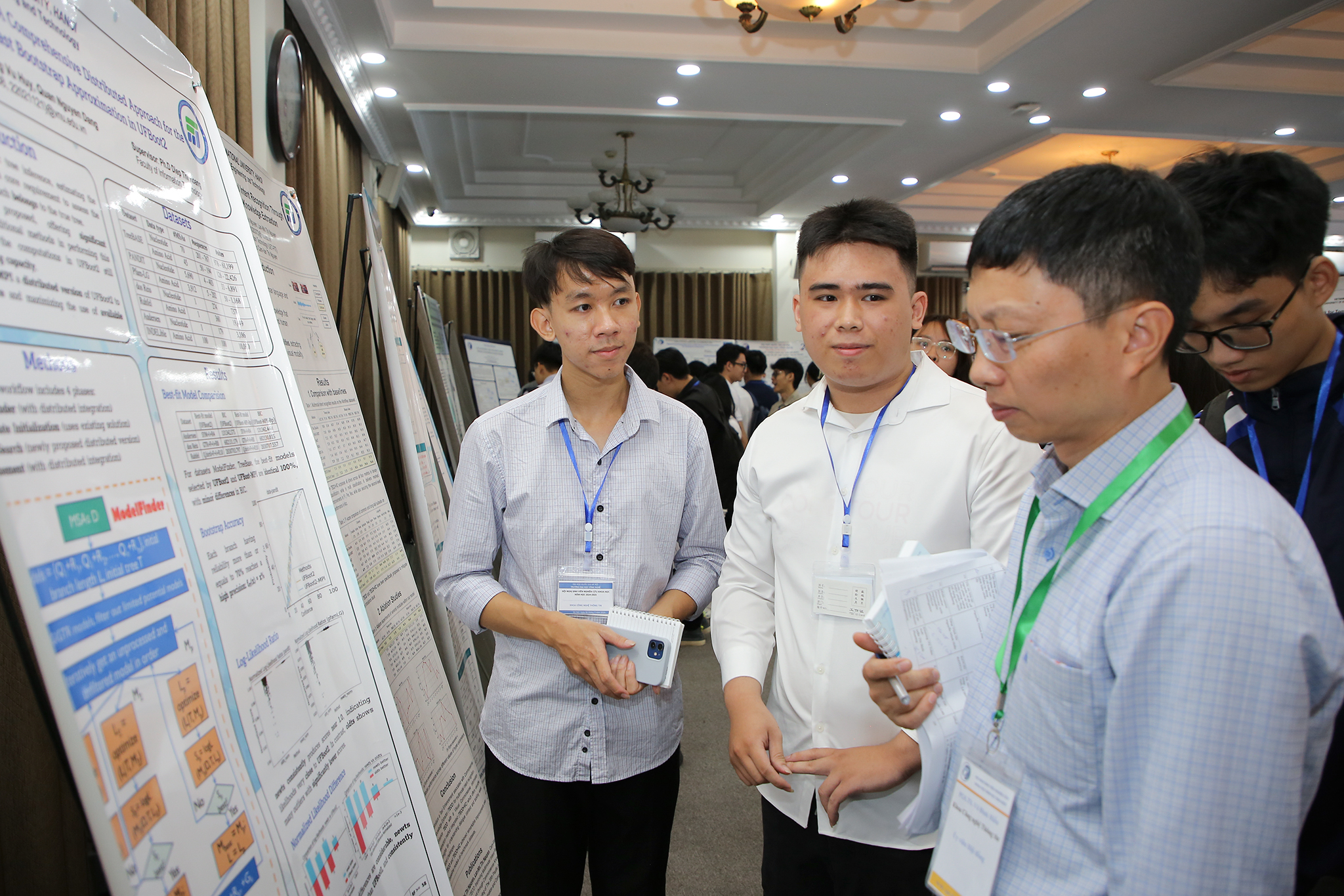 Chia sẻ tại hội nghị về bí quyết gắn kết, nhóm sinh viên Nguyễn Hữu Hồng Phúc, Lê Ngô Đức Mạnh và Nguyễn Trung Công cho biết, chính niềm đam mê nghiên cứu, tinh thần ham học hỏi và khát khao chinh phục thử thách đã giúp chúng em vượt qua mọi khác biệt về chuyên ngành. Dù đến từ những khoa khác nhau, cả nhóm đã biến sự đa dạng ấy thành thế mạnh, phân công công việc dựa trên thế mạnh riêng của từng thành viên. Thông qua đề tài này, chúng em không chỉ trau dồi kiến thức chuyên môn mà còn rèn luyện kỹ năng nghiên cứu, học cách phối hợp nhóm và phát huy tối đa năng lực cá nhân. Thành công hôm nay không chỉ mang lại niềm vui, tự hào cho nhóm mà còn lan tỏa tinh thần đổi mới, sáng tạo và hợp tác – những giá trị cốt lõi mà Nhà trường luôn nỗ lực xây dựng và vun đắp.