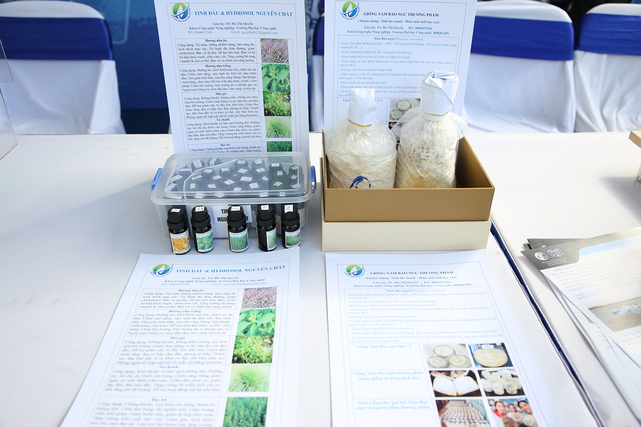 – Khoa Công nghệ nông nghiệp: Giống nấm bào ngư thương phẩm – TS. Hà Thị Quyến; Tinh dầu và hydrosol Hương nhu, Bạc hà, Sả chanh,… – TS. Hà Thị Quyến