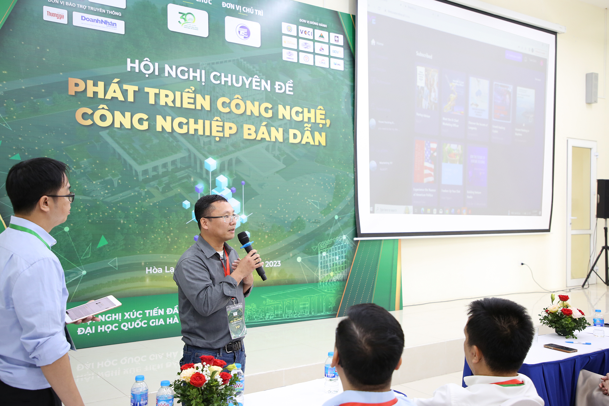 Phiên chuyên đề Phát triển công nghệ, công nghiệp bán dẫn dưới sự chủ trì của GS.TS. Chử Đức Trình – Hiệu trưởng Trường ĐH Công nghệ và các báo cáo cụ thể là: “Sản xuất bán dẫn và những thách thức tại Việt Nam” – PGS.TS. Nguyễn Trần Thuật (Trường ĐH Khoa học tự nhiên- ĐHQGHN); “Kinh nghiệm nghiên cứu phát triển nhằm đáp ứng các yêu cầu của ngành bán dẫn và vi mạch” – TS. Trịnh Công (Tập đoàn Vật liệu ứng dụng); “Hợp tác đào tạo nguồn nhân lực giữa doanh nghiệp và nhà trường” – Ông Trịnh Khắc Huề (Công ty TNHH Qorvo Việt Nam); “Ứng dụng AI trong sản xuất bán dẫn: Hiện trạng và tương lai” – TS. Đinh Anh Tuấn (Văn phòng Khoa học dữ liệu, đồng sáng lập Tập đoàn Cogitativo) đã khẳng định lĩnh vực công nghệ, công nghiệp bán dẫn hiện nay là xu thế toàn cầu và những cơ hội cho Việt Nam trong lĩnh vực này. Theo đó, Việt Nam còn chặng đường dài để làm chủ ngành công nghiệp nói chung, đặc biệt là công nghiệp điện tử và bán dẫn. Với những sức mạnh đến từ nội lực, công nghệ và con người Việt Nam trong tương lai sẽ làm chủ nền công nghiệp phát triển, bền vững và mong muốn trở thành mắt xích quan trọng trong chuỗi công nghệ toàn cầu.