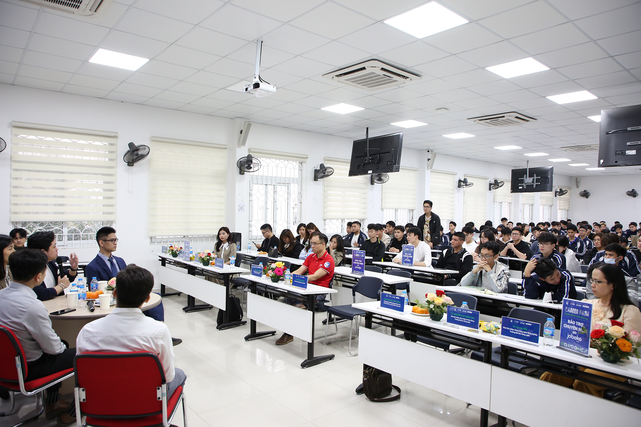 Tại Hội thảo, nhiều câu hỏi băn khoăn của sinh viên trong quá trình học tập, phương pháp học tập, kỹ năng phỏng vấn, ứng tuyển việc làm…đều được các diễn giả, với kinh nghiệm của bản thân và thông qua những tình huống cụ thể giải đáp nhiệt tình, giúp sinh viên nhìn đúng hơn về định hướng nghề nghiệp cho bản thân, hiểu rõ hơn về bản thân. Nhà tuyển dụng không những quan tâm đến năng lực chuyên môn, mà còn quan tâm sinh viên có phù hợp với doanh nghiệp không, các kỹ năng mềm, cách xử lý tình huống, phẩm chất đạo đức,… của sinh viên.