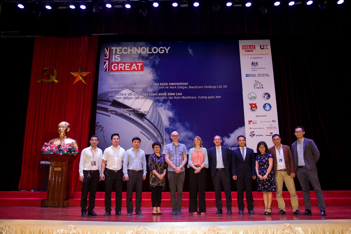 Bên cạnh đó, rất nhiều câu hỏi tới từ các bạn sinh viên về cách đưa ra ý tưởng sáng tạo, cách đưa sản phẩm công nghệ cao tới thị trường hay kêu gọi đầu tư vào sáng tạo công nghệ đều được diễn giả người Anh giải đáp tới mọi người. Ông Gilligan cũng mở ra cho các bạn sinh viên những cơ hội học tập, nghiên cứu và hợp tác với tập đoàn Blacktrace ở ngay tại Hà Nội cũng như Vương quốc Anh.